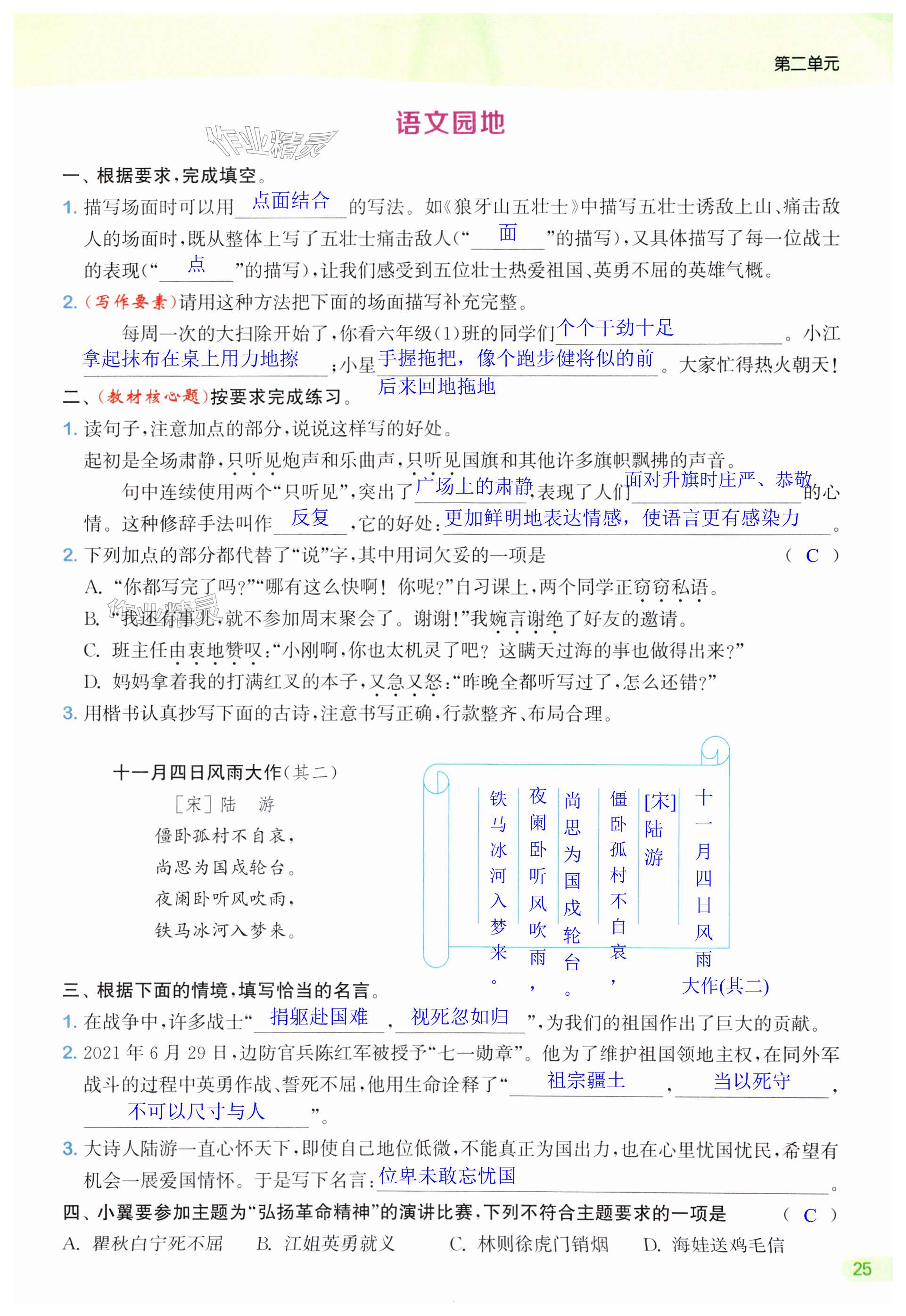 注:目前有些书本章节名称可能整理的还不是很完善,但都是按照顺序排列的,请同学们按照顺序仔细查找。练习册 2024年课时作业本闯关练六年级语文上册人教版江苏专版 答案主要是用来给同学们做完题方便对答案用的,请勿直接抄袭。