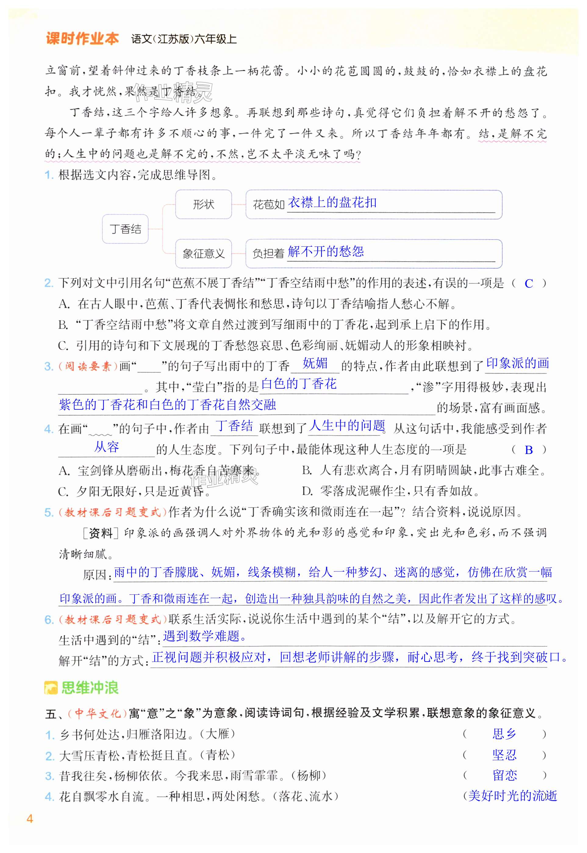 注:目前有些书本章节名称可能整理的还不是很完善,但都是按照顺序排列的,请同学们按照顺序仔细查找。练习册 2024年课时作业本闯关练六年级语文上册人教版江苏专版 答案主要是用来给同学们做完题方便对答案用的,请勿直接抄袭。