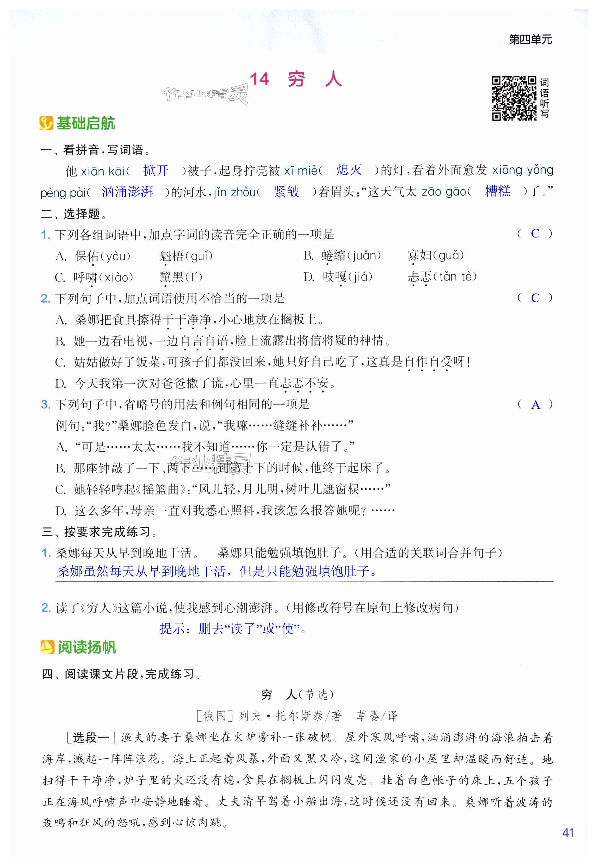 注:目前有些书本章节名称可能整理的还不是很完善,但都是按照顺序排列的,请同学们按照顺序仔细查找。练习册 2024年课时作业本闯关练六年级语文上册人教版江苏专版 答案主要是用来给同学们做完题方便对答案用的,请勿直接抄袭。
