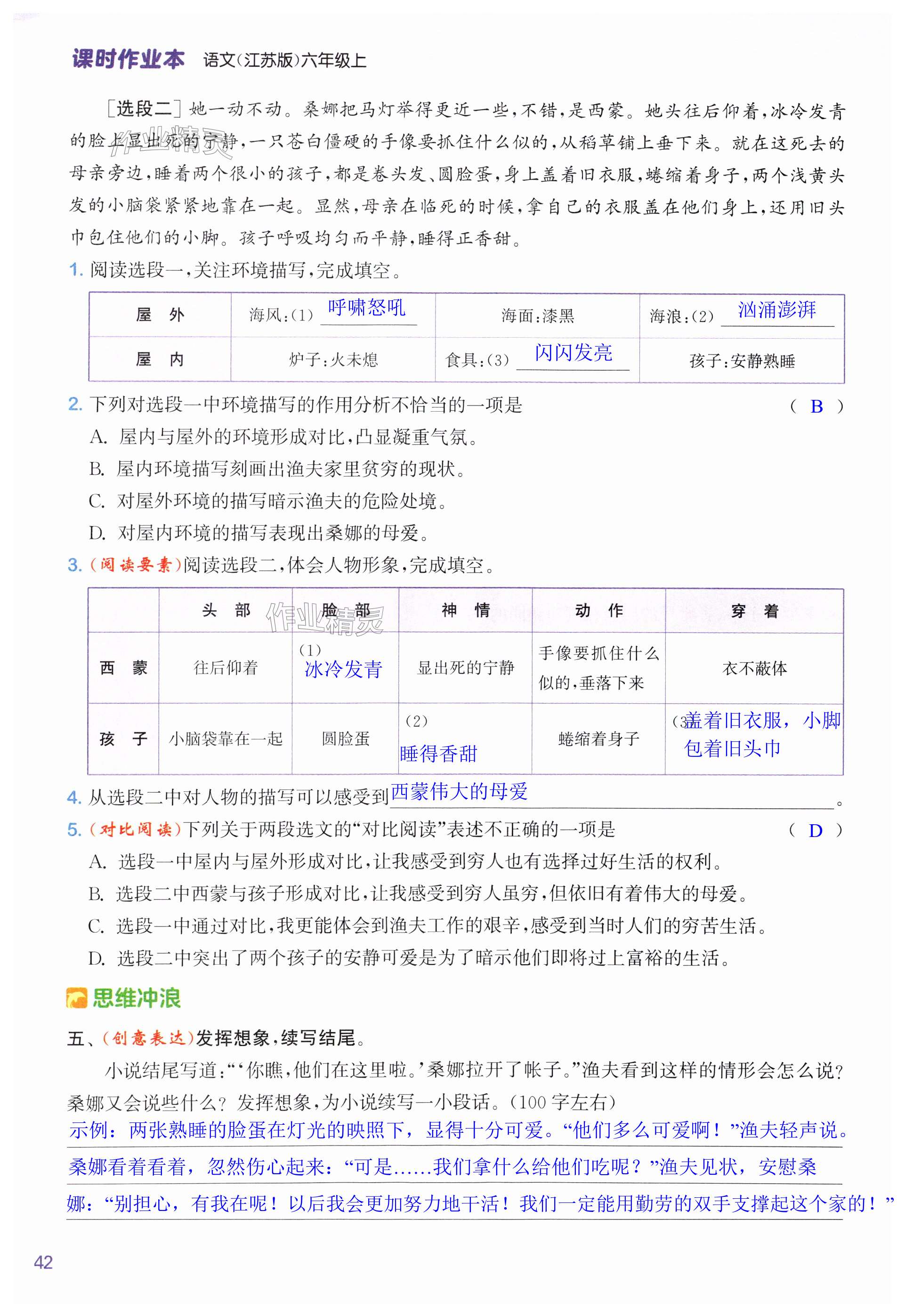 注:目前有些书本章节名称可能整理的还不是很完善,但都是按照顺序排列的,请同学们按照顺序仔细查找。练习册 2024年课时作业本闯关练六年级语文上册人教版江苏专版 答案主要是用来给同学们做完题方便对答案用的,请勿直接抄袭。