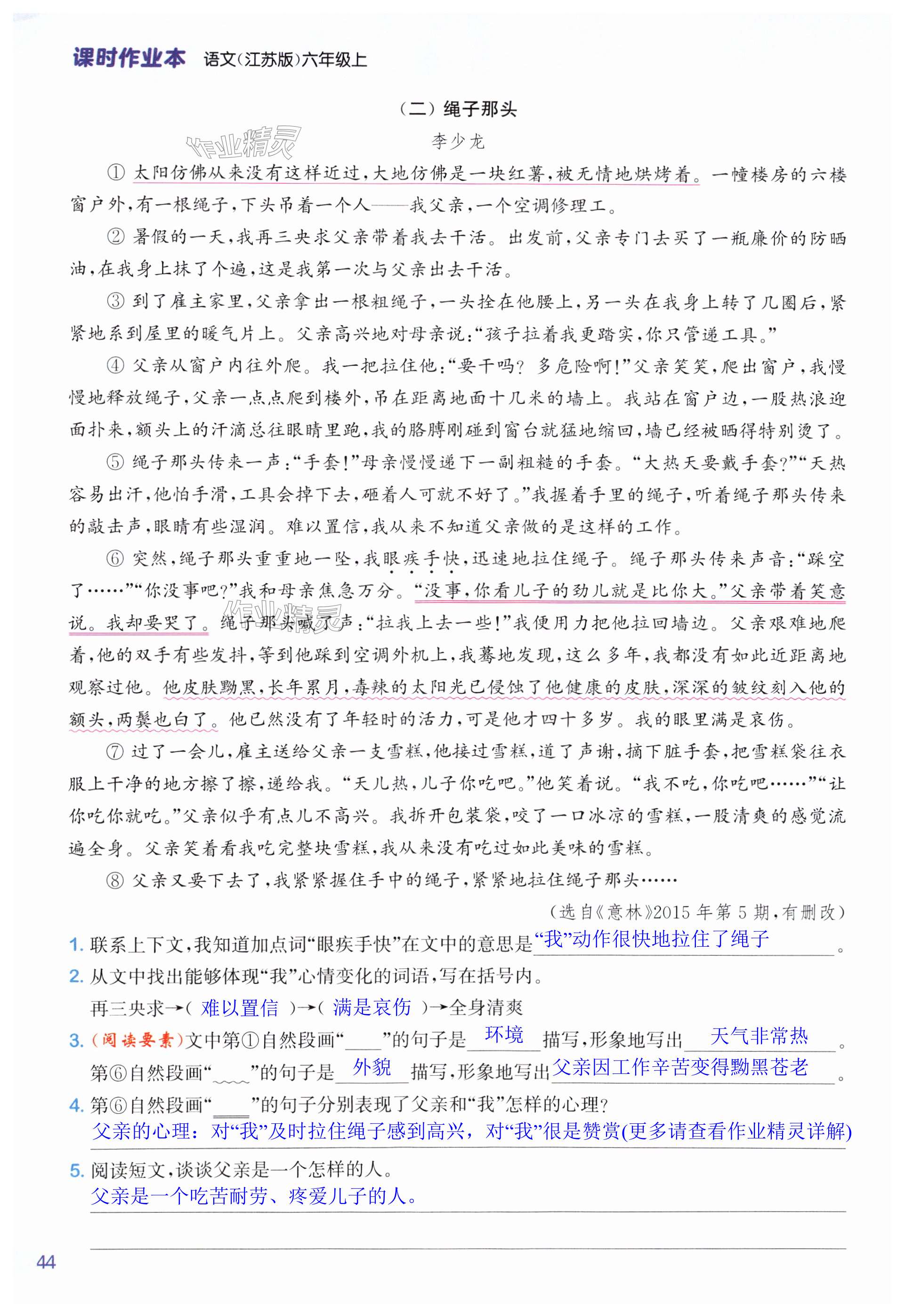 注:目前有些书本章节名称可能整理的还不是很完善,但都是按照顺序排列的,请同学们按照顺序仔细查找。练习册 2024年课时作业本闯关练六年级语文上册人教版江苏专版 答案主要是用来给同学们做完题方便对答案用的,请勿直接抄袭。