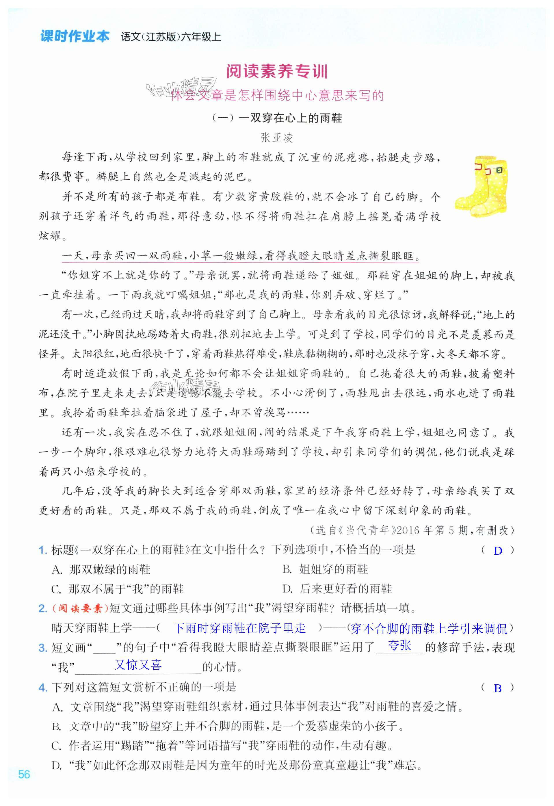 注:目前有些书本章节名称可能整理的还不是很完善,但都是按照顺序排列的,请同学们按照顺序仔细查找。练习册 2024年课时作业本闯关练六年级语文上册人教版江苏专版 答案主要是用来给同学们做完题方便对答案用的,请勿直接抄袭。