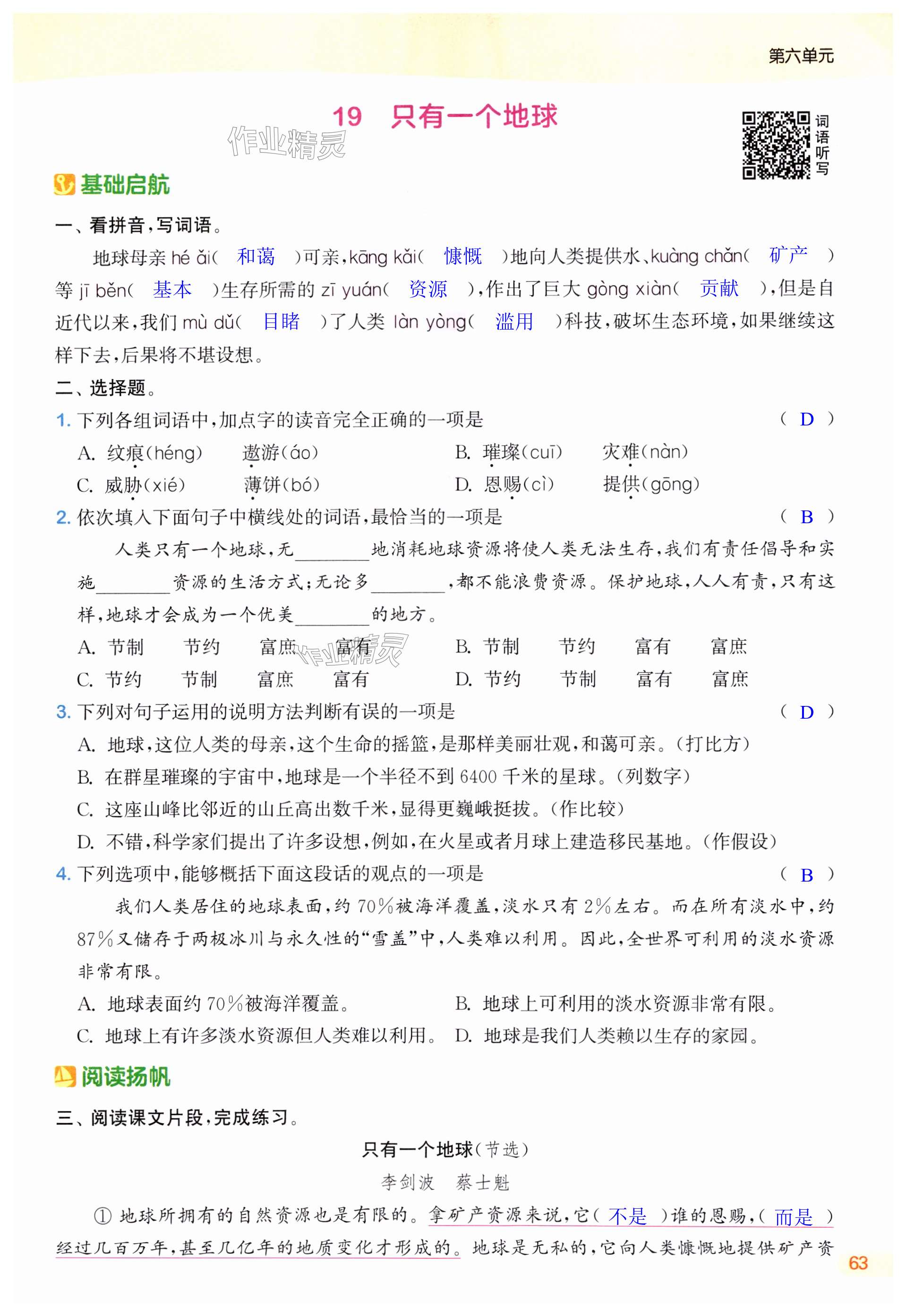 注:目前有些书本章节名称可能整理的还不是很完善,但都是按照顺序排列的,请同学们按照顺序仔细查找。练习册 2024年课时作业本闯关练六年级语文上册人教版江苏专版 答案主要是用来给同学们做完题方便对答案用的,请勿直接抄袭。