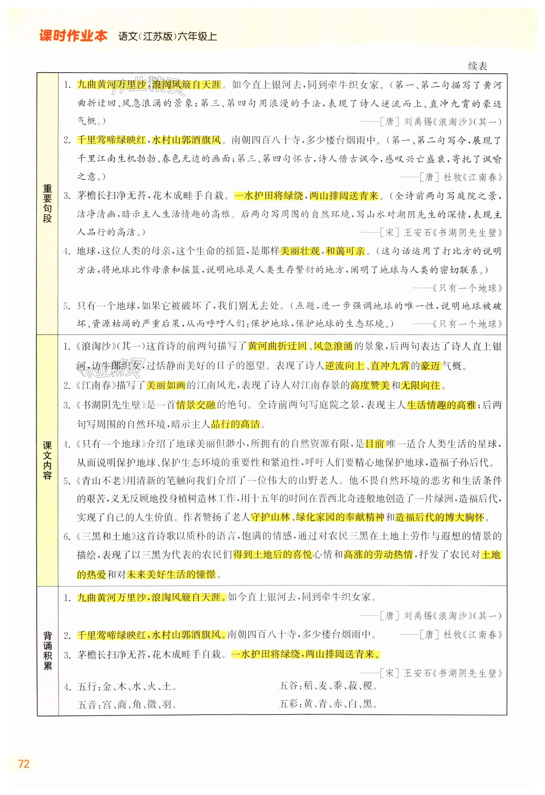 2024年课时作业本闯关练六年级语文上册人教版江苏专版
