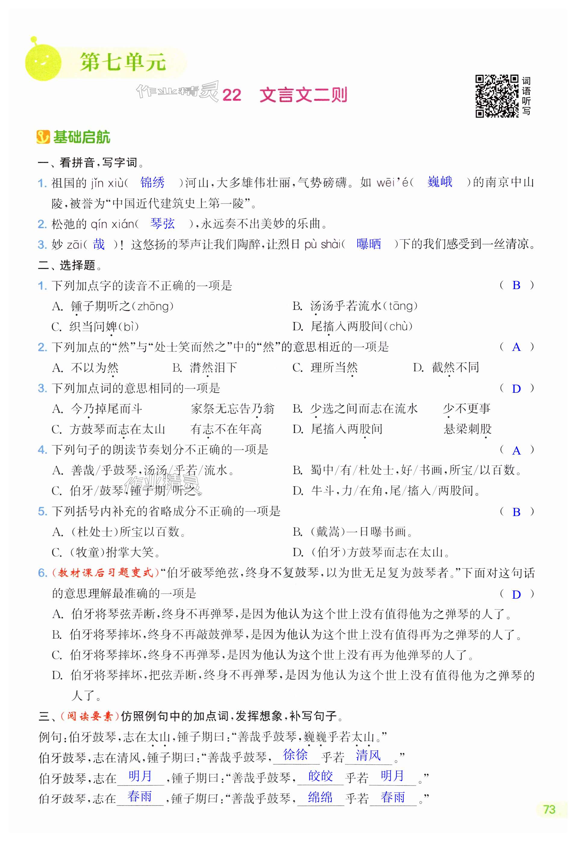 注:目前有些书本章节名称可能整理的还不是很完善,但都是按照顺序排列的,请同学们按照顺序仔细查找。练习册 2024年课时作业本闯关练六年级语文上册人教版江苏专版 答案主要是用来给同学们做完题方便对答案用的,请勿直接抄袭。