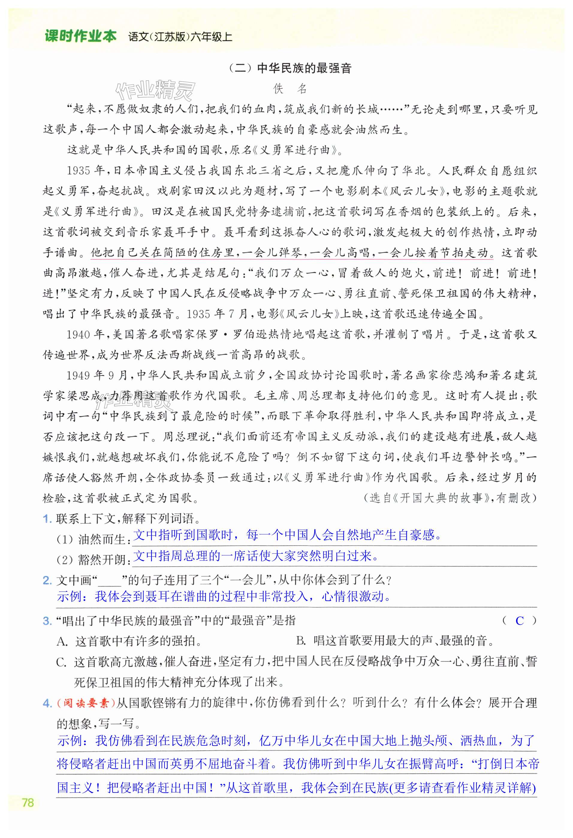 注:目前有些书本章节名称可能整理的还不是很完善,但都是按照顺序排列的,请同学们按照顺序仔细查找。练习册 2024年课时作业本闯关练六年级语文上册人教版江苏专版 答案主要是用来给同学们做完题方便对答案用的,请勿直接抄袭。