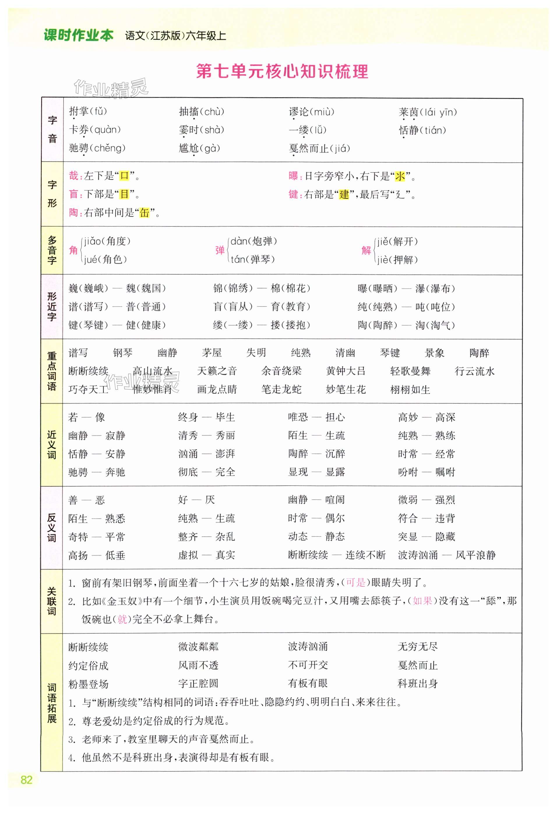 注:目前有些书本章节名称可能整理的还不是很完善,但都是按照顺序排列的,请同学们按照顺序仔细查找。练习册 2024年课时作业本闯关练六年级语文上册人教版江苏专版 答案主要是用来给同学们做完题方便对答案用的,请勿直接抄袭。