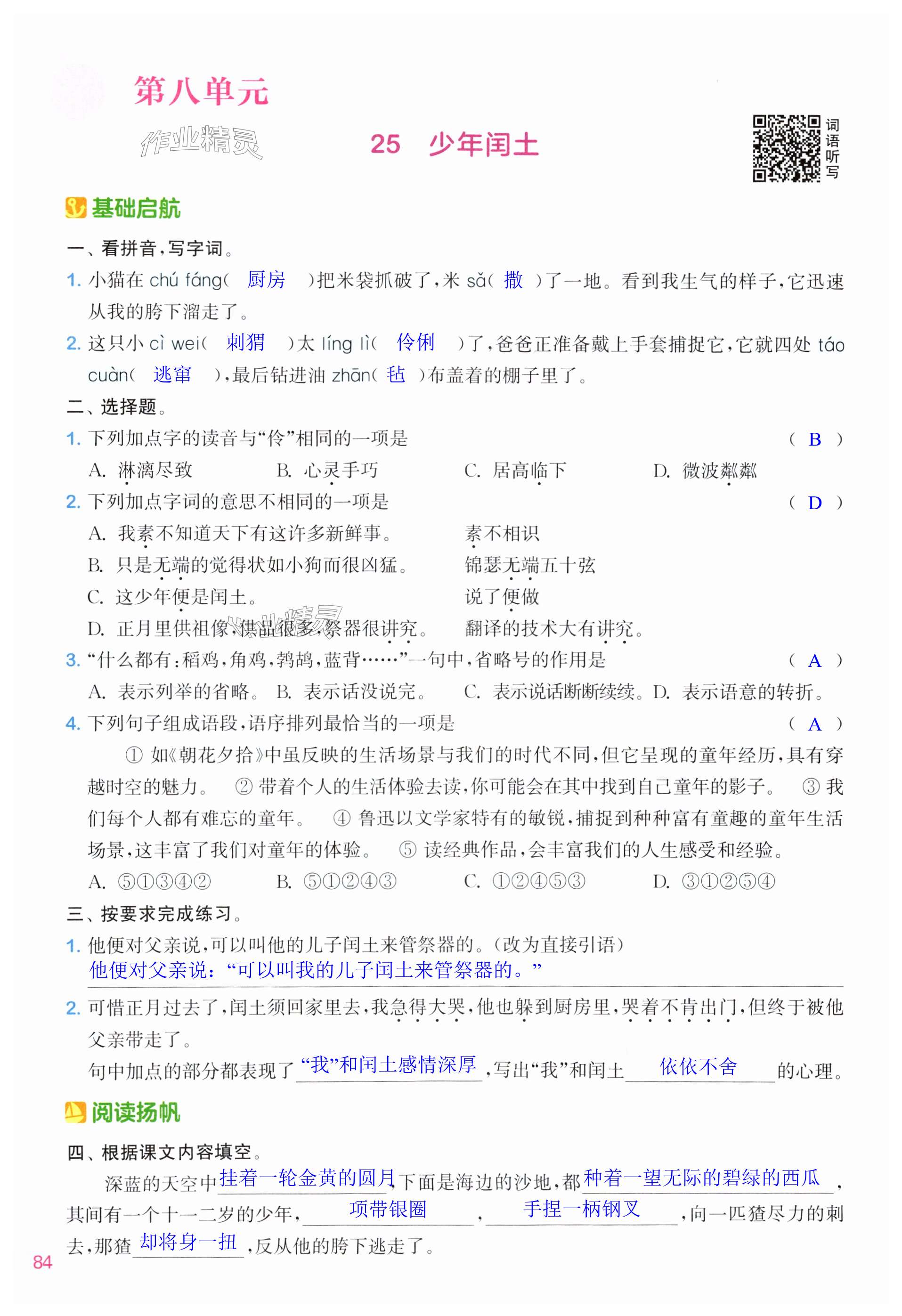 注:目前有些书本章节名称可能整理的还不是很完善,但都是按照顺序排列的,请同学们按照顺序仔细查找。练习册 2024年课时作业本闯关练六年级语文上册人教版江苏专版 答案主要是用来给同学们做完题方便对答案用的,请勿直接抄袭。