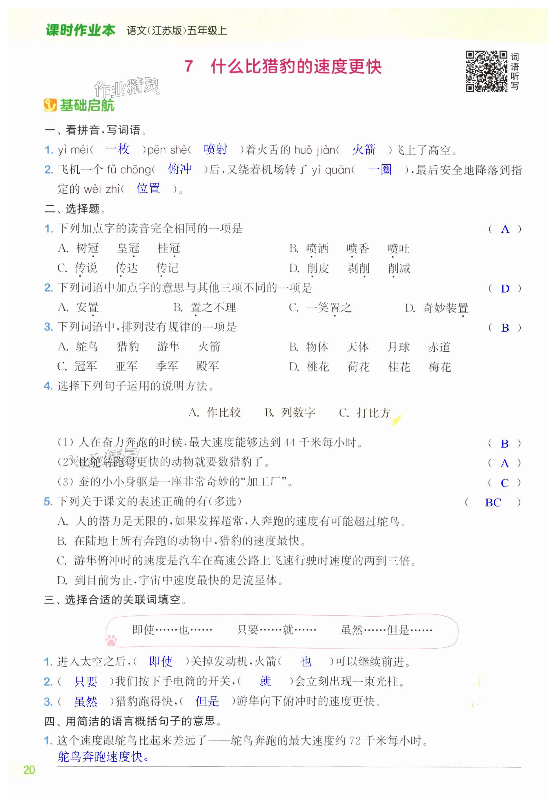 注:目前有些书本章节名称可能整理的还不是很完善,但都是按照顺序排列的,请同学们按照顺序仔细查找。练习册 2024年课时作业本闯关练五年级语文上册人教版江苏专版 答案主要是用来给同学们做完题方便对答案用的,请勿直接抄袭。