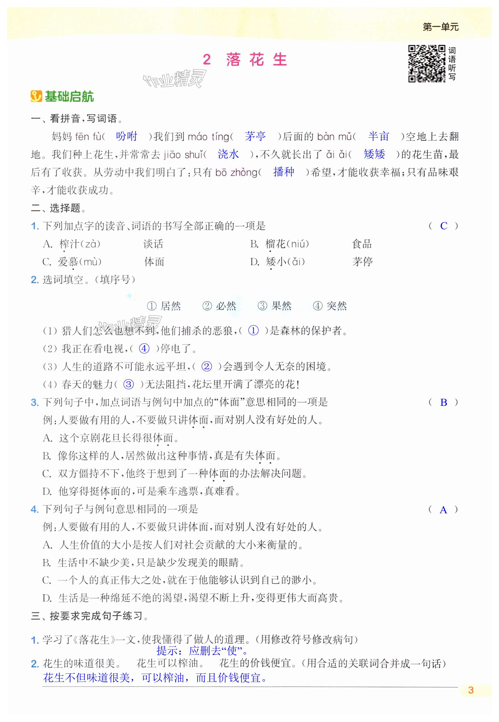 注:目前有些书本章节名称可能整理的还不是很完善,但都是按照顺序排列的,请同学们按照顺序仔细查找。练习册 2024年课时作业本闯关练五年级语文上册人教版江苏专版 答案主要是用来给同学们做完题方便对答案用的,请勿直接抄袭。