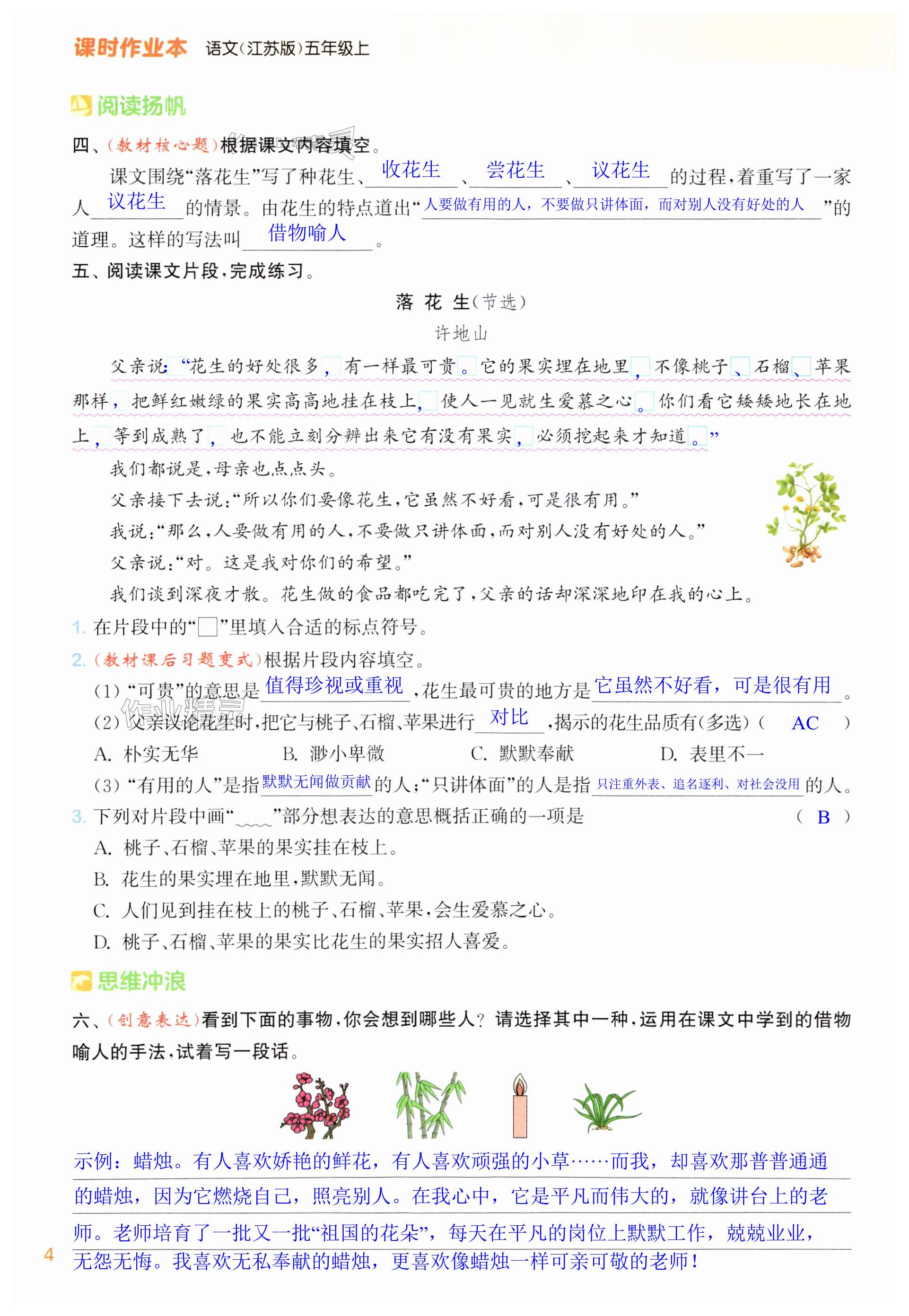注:目前有些书本章节名称可能整理的还不是很完善,但都是按照顺序排列的,请同学们按照顺序仔细查找。练习册 2024年课时作业本闯关练五年级语文上册人教版江苏专版 答案主要是用来给同学们做完题方便对答案用的,请勿直接抄袭。