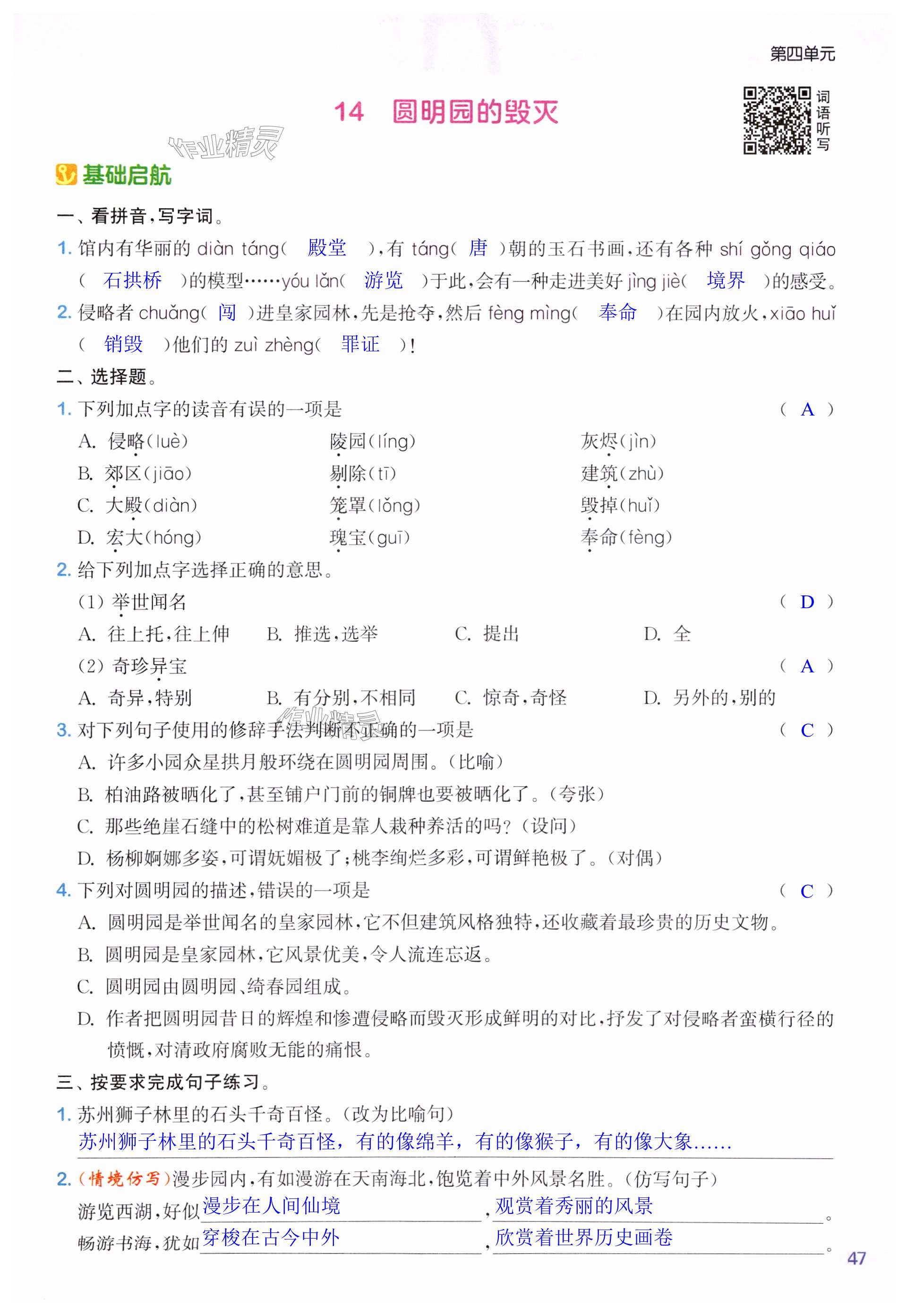 注:目前有些书本章节名称可能整理的还不是很完善,但都是按照顺序排列的,请同学们按照顺序仔细查找。练习册 2024年课时作业本闯关练五年级语文上册人教版江苏专版 答案主要是用来给同学们做完题方便对答案用的,请勿直接抄袭。