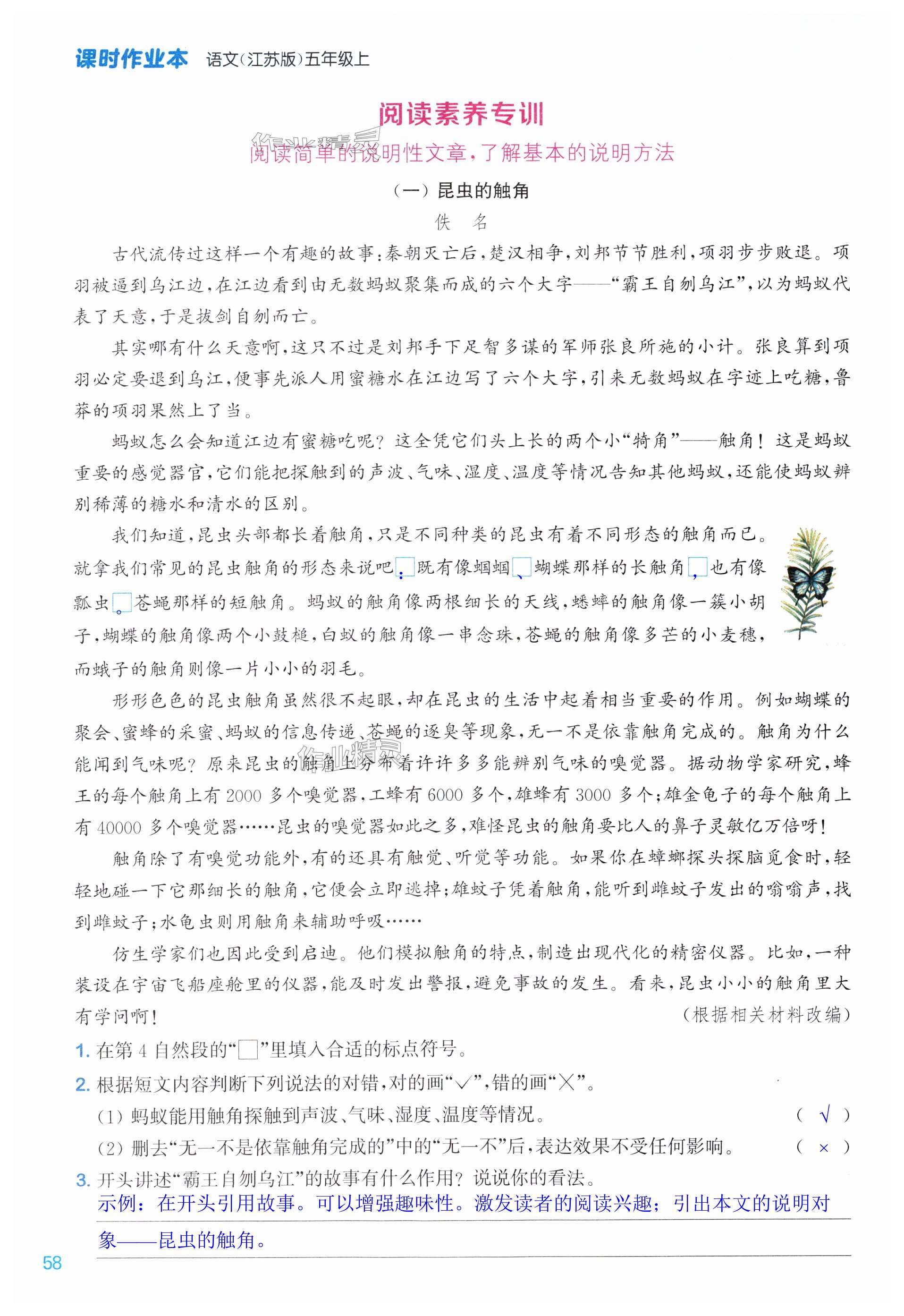 注:目前有些书本章节名称可能整理的还不是很完善,但都是按照顺序排列的,请同学们按照顺序仔细查找。练习册 2024年课时作业本闯关练五年级语文上册人教版江苏专版 答案主要是用来给同学们做完题方便对答案用的,请勿直接抄袭。