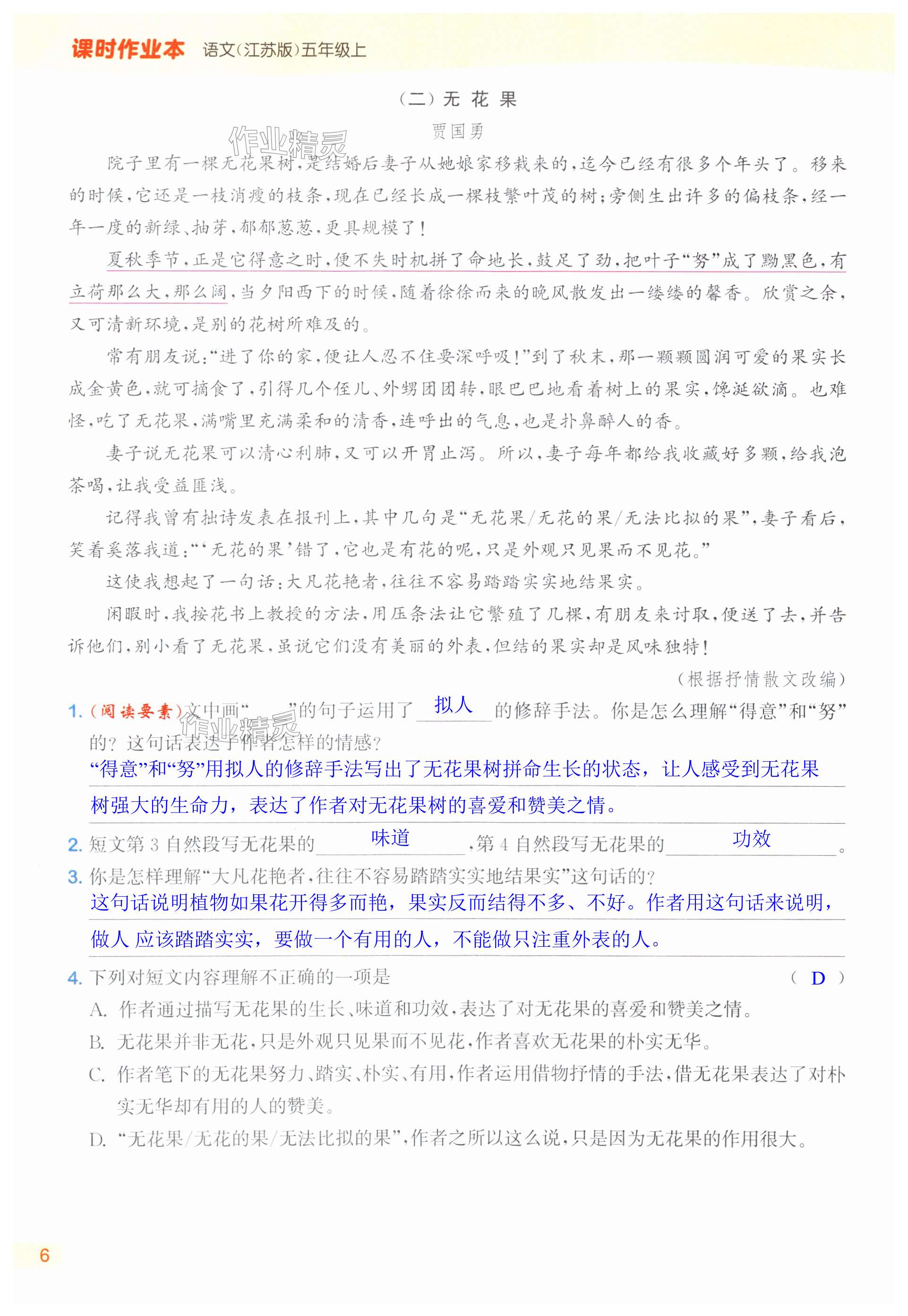 注:目前有些书本章节名称可能整理的还不是很完善,但都是按照顺序排列的,请同学们按照顺序仔细查找。练习册 2024年课时作业本闯关练五年级语文上册人教版江苏专版 答案主要是用来给同学们做完题方便对答案用的,请勿直接抄袭。
