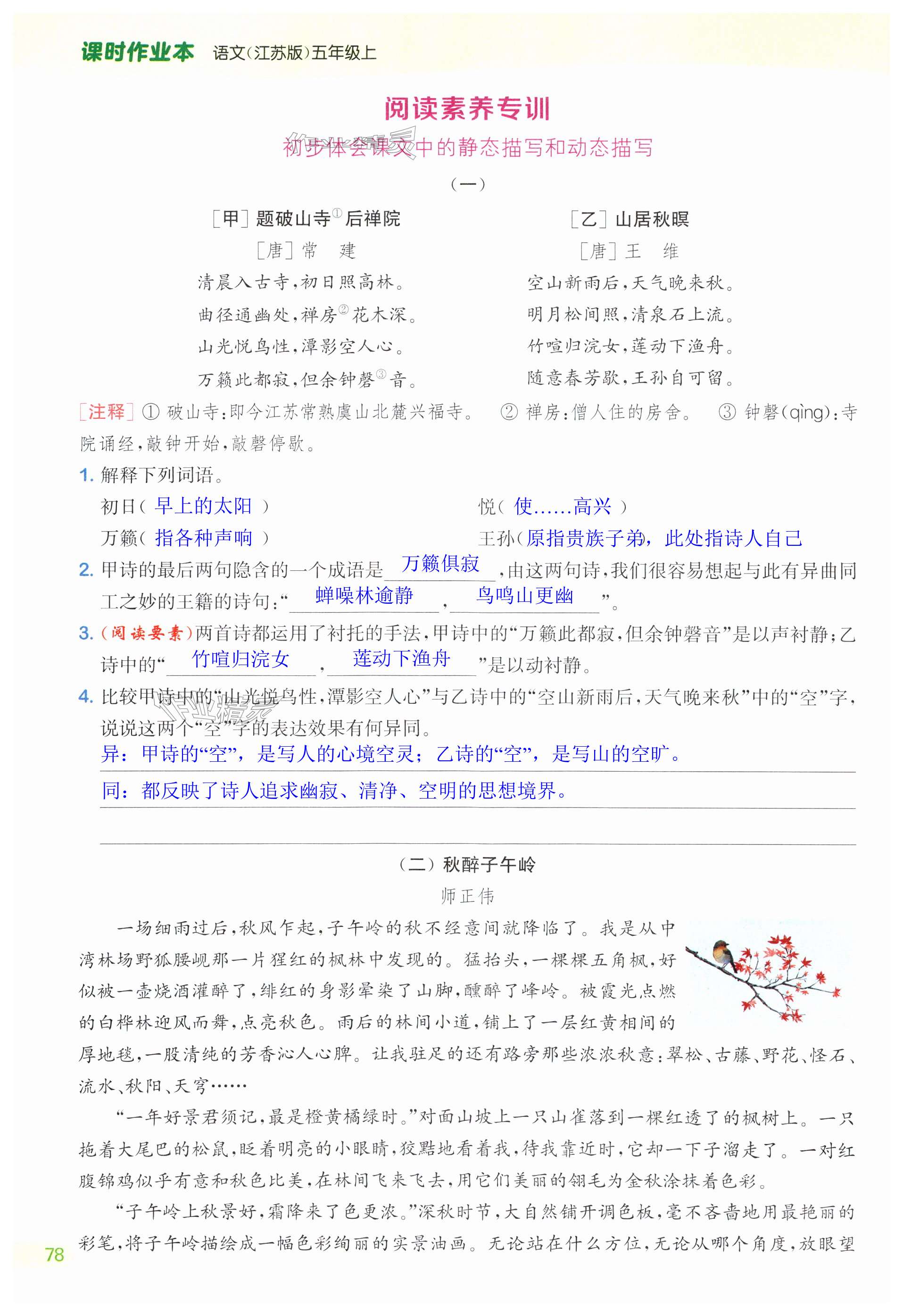 注:目前有些书本章节名称可能整理的还不是很完善,但都是按照顺序排列的,请同学们按照顺序仔细查找。练习册 2024年课时作业本闯关练五年级语文上册人教版江苏专版 答案主要是用来给同学们做完题方便对答案用的,请勿直接抄袭。