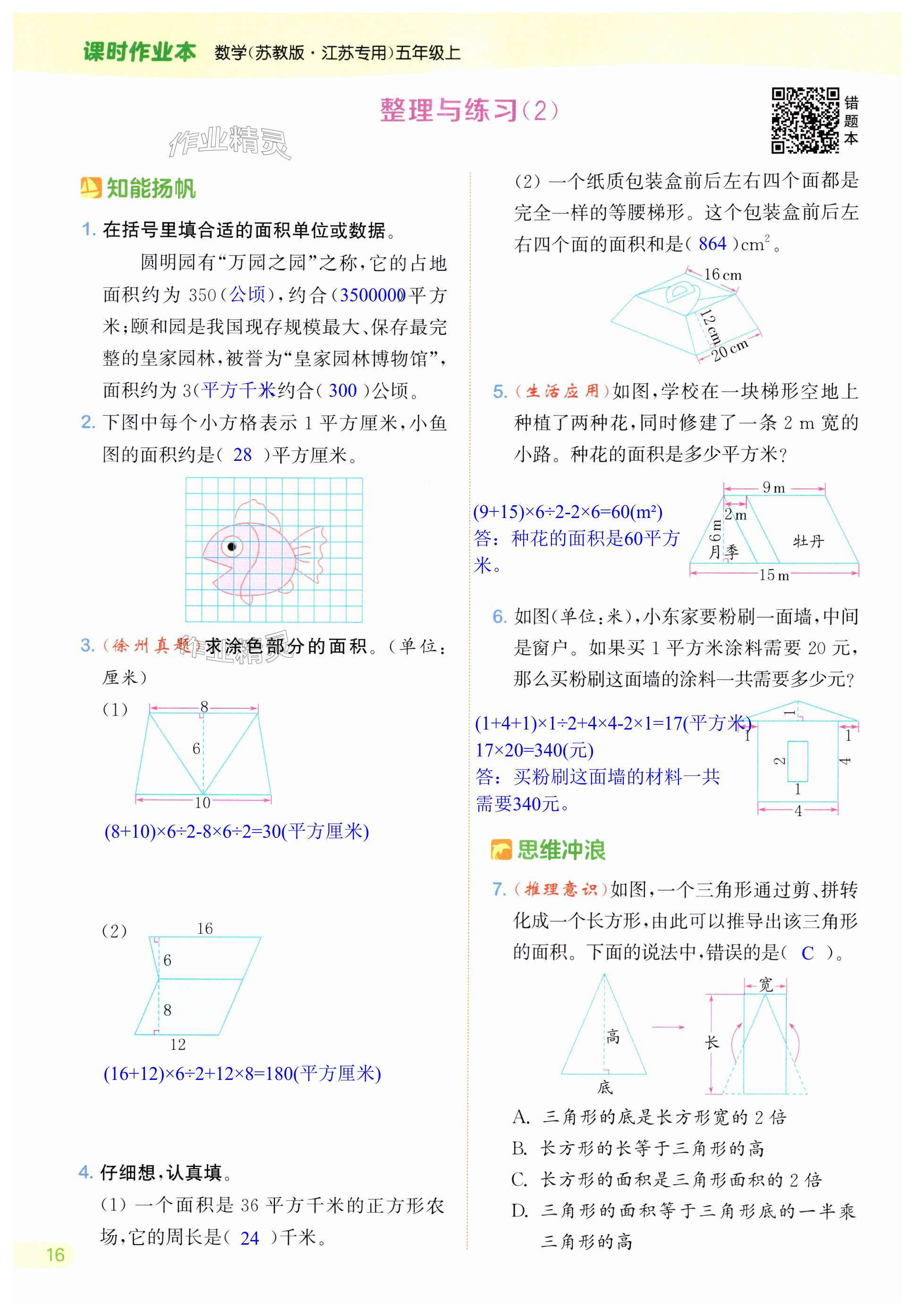 注:目前有些书本章节名称可能整理的还不是很完善,但都是按照顺序排列的,请同学们按照顺序仔细查找。练习册 2024年课时作业本闯关练五年级数学上册苏教版江苏专版 答案主要是用来给同学们做完题方便对答案用的,请勿直接抄袭。