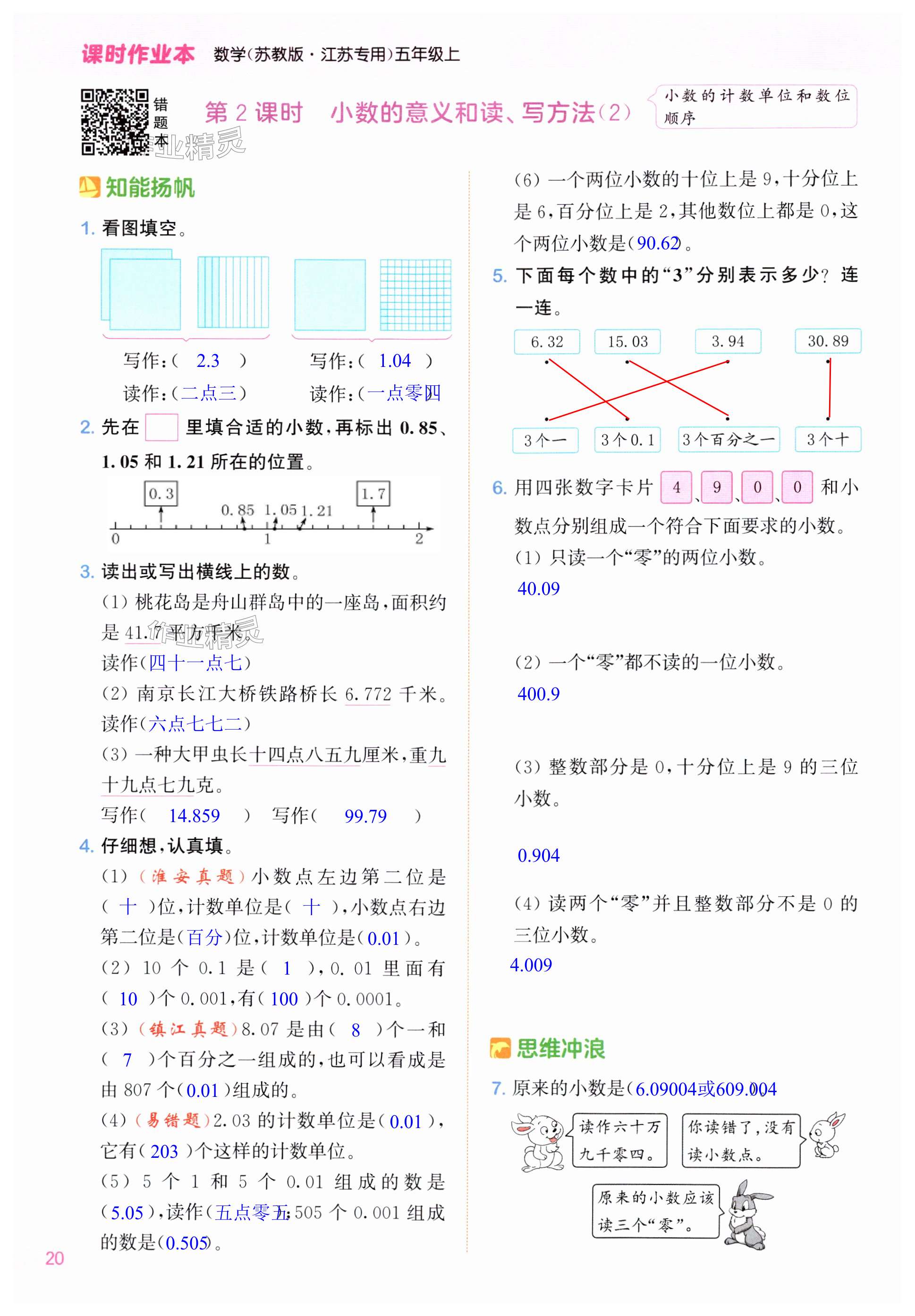 注:目前有些书本章节名称可能整理的还不是很完善,但都是按照顺序排列的,请同学们按照顺序仔细查找。练习册 2024年课时作业本闯关练五年级数学上册苏教版江苏专版 答案主要是用来给同学们做完题方便对答案用的,请勿直接抄袭。