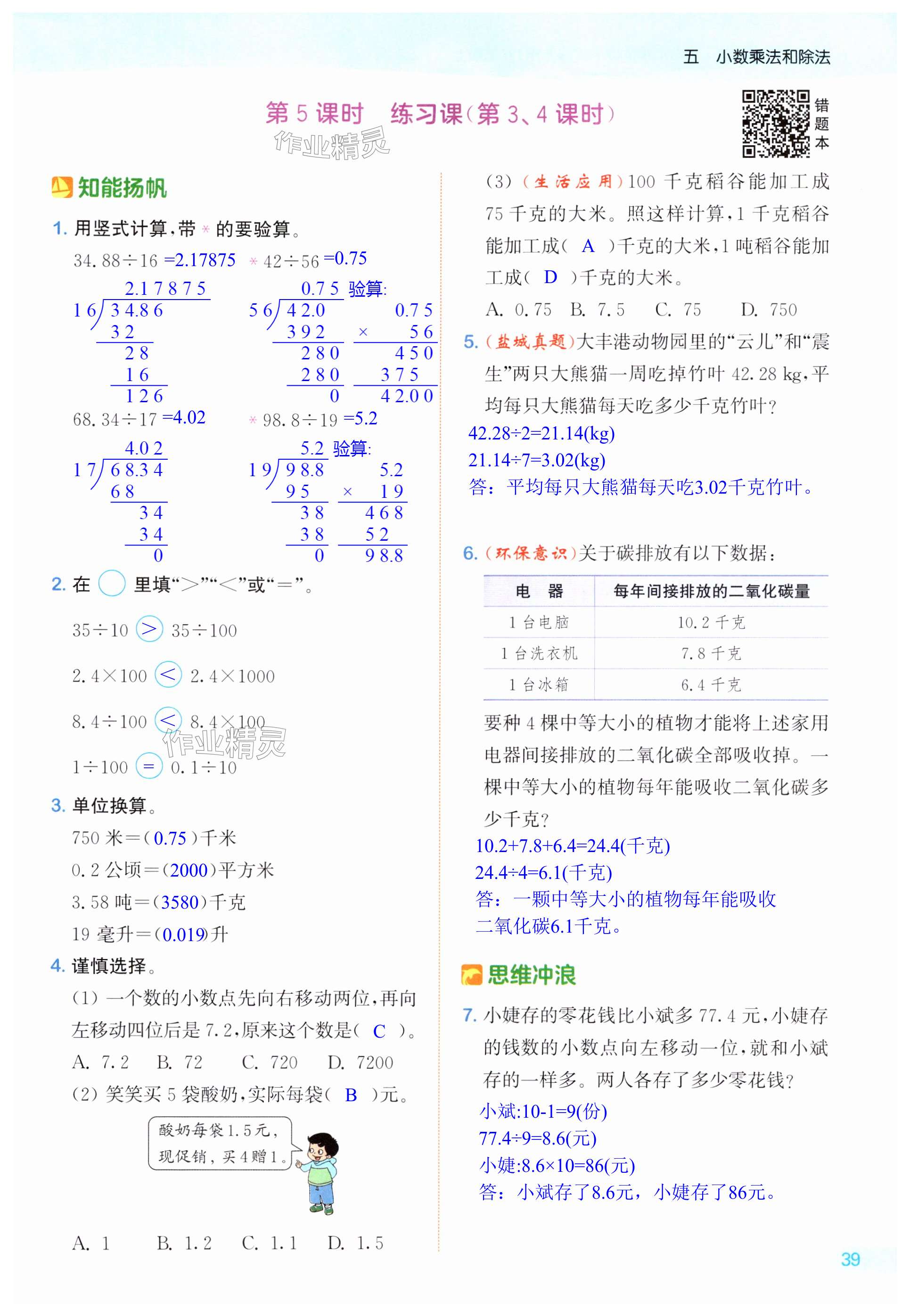 注:目前有些书本章节名称可能整理的还不是很完善,但都是按照顺序排列的,请同学们按照顺序仔细查找。练习册 2024年课时作业本闯关练五年级数学上册苏教版江苏专版 答案主要是用来给同学们做完题方便对答案用的,请勿直接抄袭。