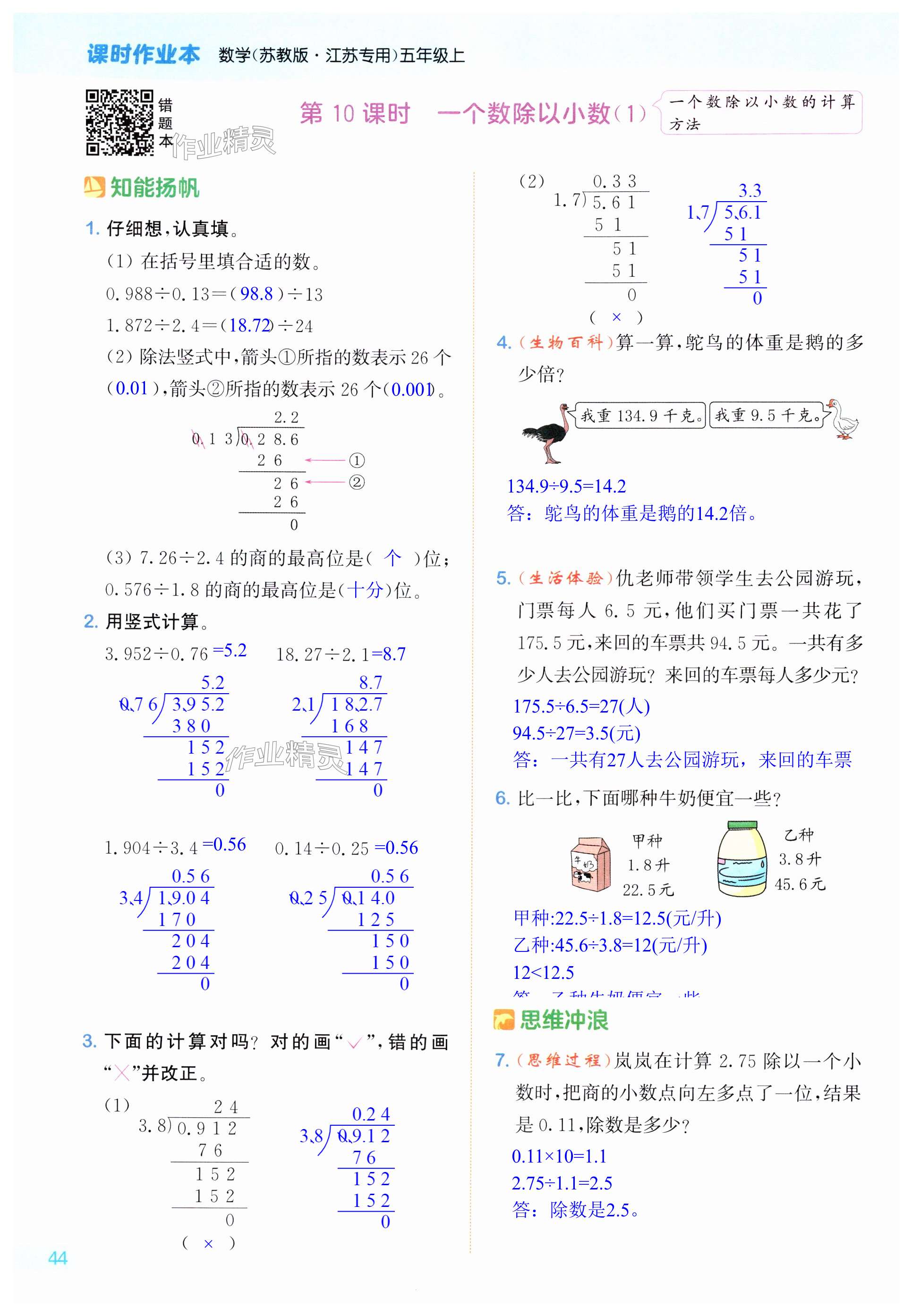 注:目前有些书本章节名称可能整理的还不是很完善,但都是按照顺序排列的,请同学们按照顺序仔细查找。练习册 2024年课时作业本闯关练五年级数学上册苏教版江苏专版 答案主要是用来给同学们做完题方便对答案用的,请勿直接抄袭。