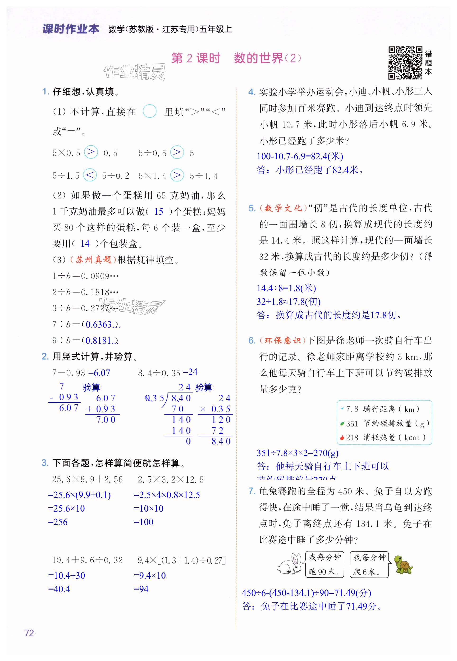 注:目前有些书本章节名称可能整理的还不是很完善,但都是按照顺序排列的,请同学们按照顺序仔细查找。练习册 2024年课时作业本闯关练五年级数学上册苏教版江苏专版 答案主要是用来给同学们做完题方便对答案用的,请勿直接抄袭。