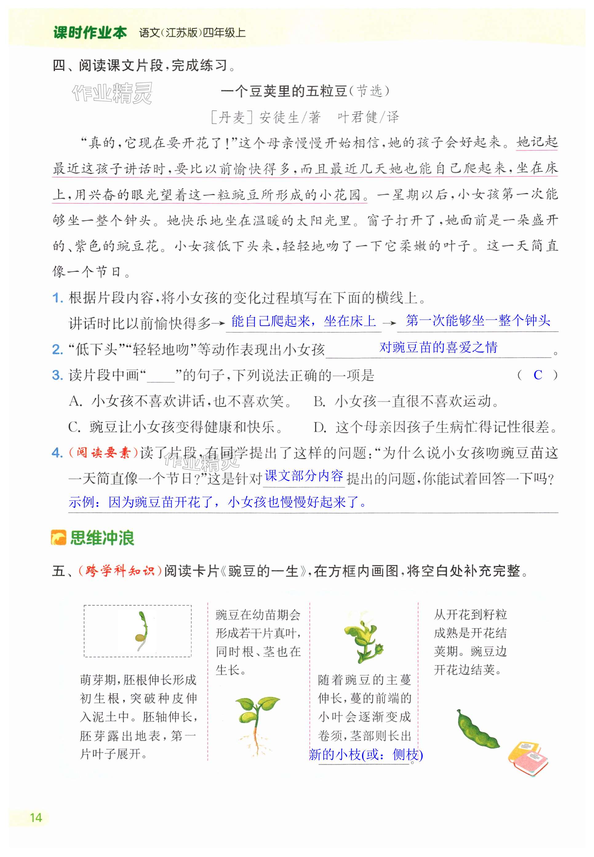 注:目前有些书本章节名称可能整理的还不是很完善,但都是按照顺序排列的,请同学们按照顺序仔细查找。练习册 2024年课时作业本闯关练四年级语文上册人教版江苏专版 答案主要是用来给同学们做完题方便对答案用的,请勿直接抄袭。