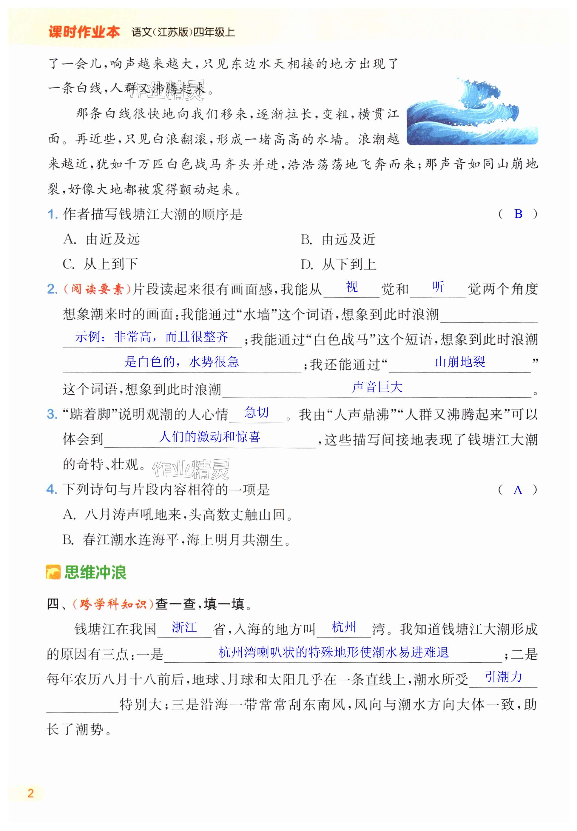 注:目前有些书本章节名称可能整理的还不是很完善,但都是按照顺序排列的,请同学们按照顺序仔细查找。练习册 2024年课时作业本闯关练四年级语文上册人教版江苏专版 答案主要是用来给同学们做完题方便对答案用的,请勿直接抄袭。