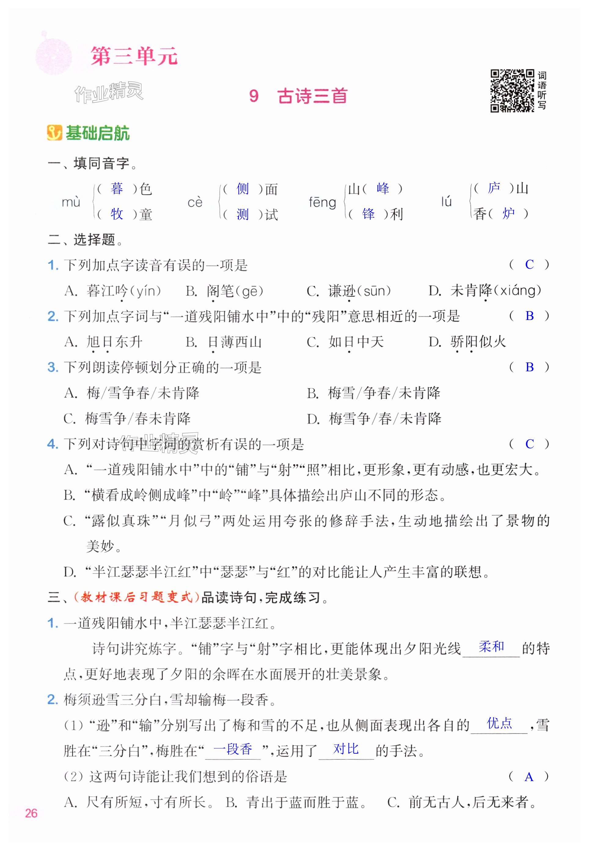 注:目前有些书本章节名称可能整理的还不是很完善,但都是按照顺序排列的,请同学们按照顺序仔细查找。练习册 2024年课时作业本闯关练四年级语文上册人教版江苏专版 答案主要是用来给同学们做完题方便对答案用的,请勿直接抄袭。