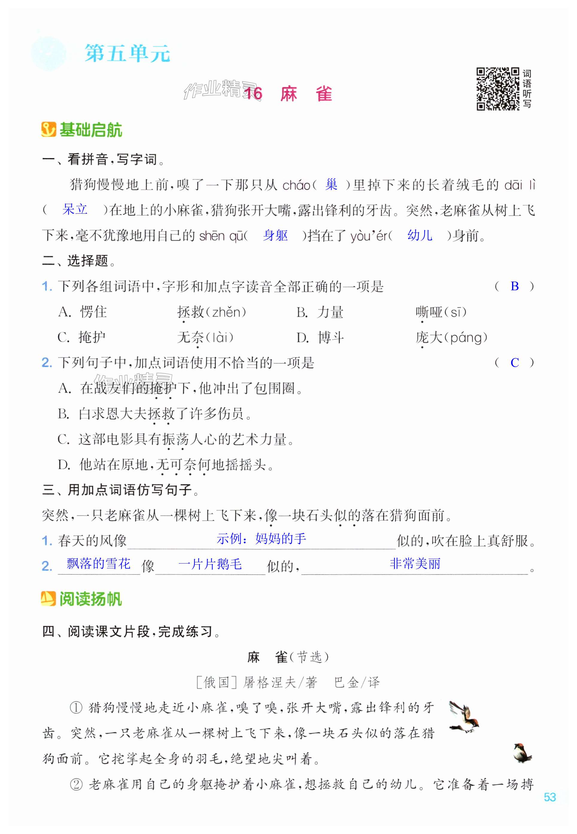 注:目前有些书本章节名称可能整理的还不是很完善,但都是按照顺序排列的,请同学们按照顺序仔细查找。练习册 2024年课时作业本闯关练四年级语文上册人教版江苏专版 答案主要是用来给同学们做完题方便对答案用的,请勿直接抄袭。