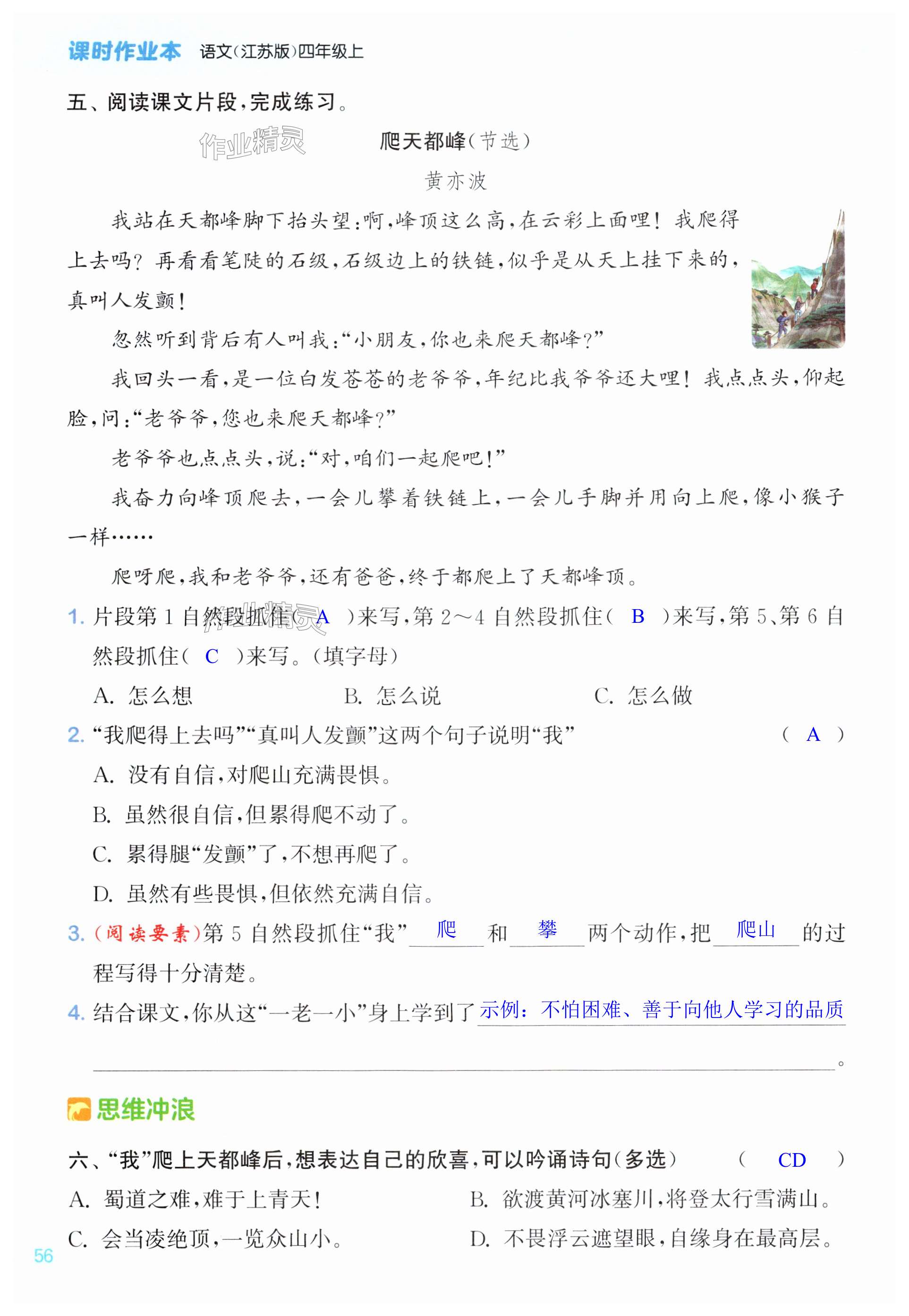 注:目前有些书本章节名称可能整理的还不是很完善,但都是按照顺序排列的,请同学们按照顺序仔细查找。练习册 2024年课时作业本闯关练四年级语文上册人教版江苏专版 答案主要是用来给同学们做完题方便对答案用的,请勿直接抄袭。