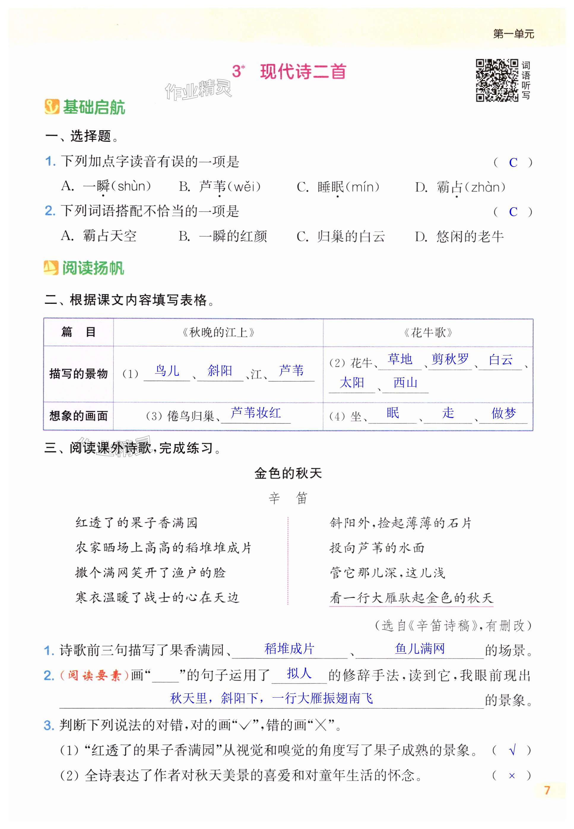 注:目前有些书本章节名称可能整理的还不是很完善,但都是按照顺序排列的,请同学们按照顺序仔细查找。练习册 2024年课时作业本闯关练四年级语文上册人教版江苏专版 答案主要是用来给同学们做完题方便对答案用的,请勿直接抄袭。