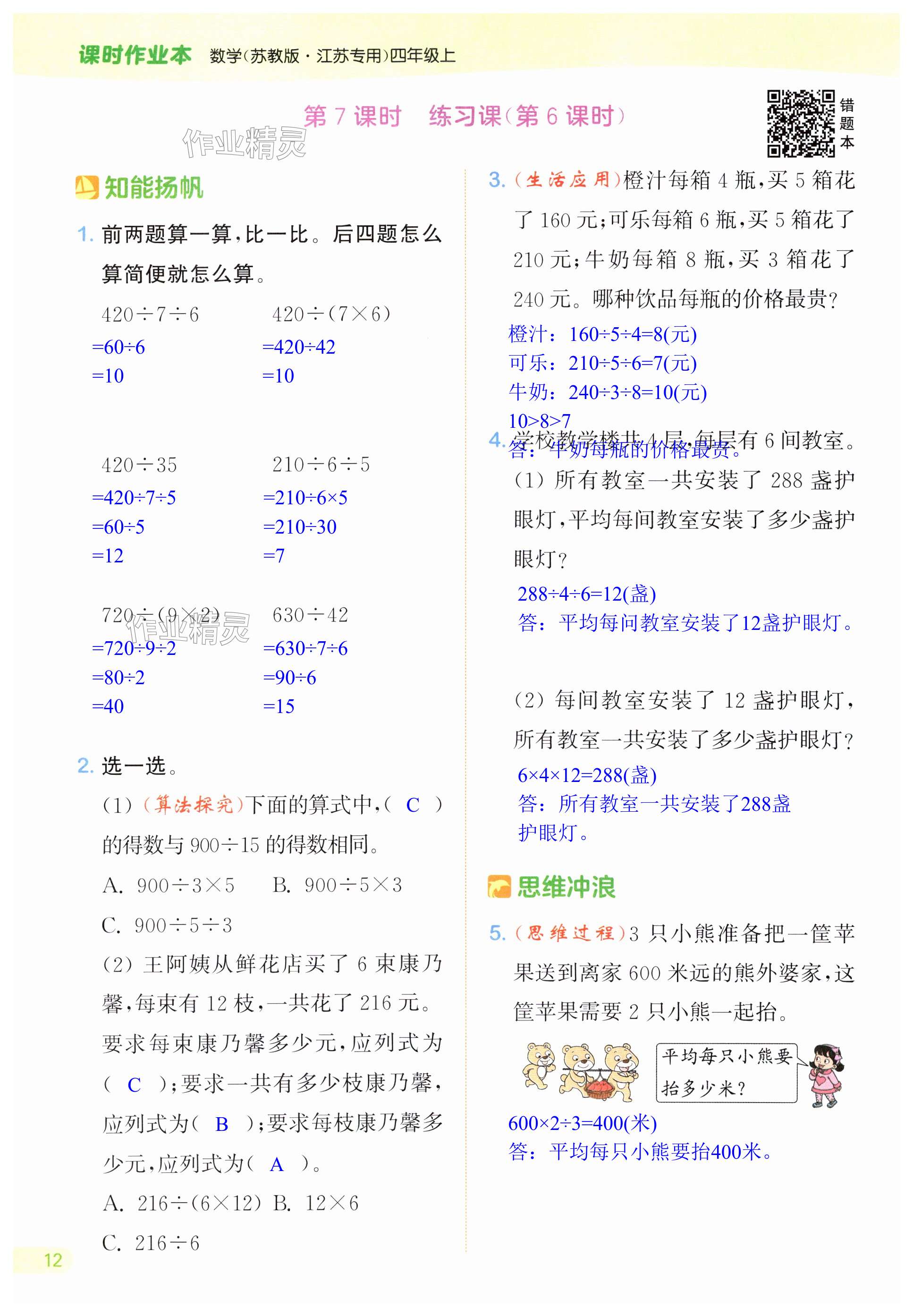 注:目前有些书本章节名称可能整理的还不是很完善,但都是按照顺序排列的,请同学们按照顺序仔细查找。练习册 2024年课时作业本闯关练四年级数学上册苏教版江苏专版 答案主要是用来给同学们做完题方便对答案用的,请勿直接抄袭。