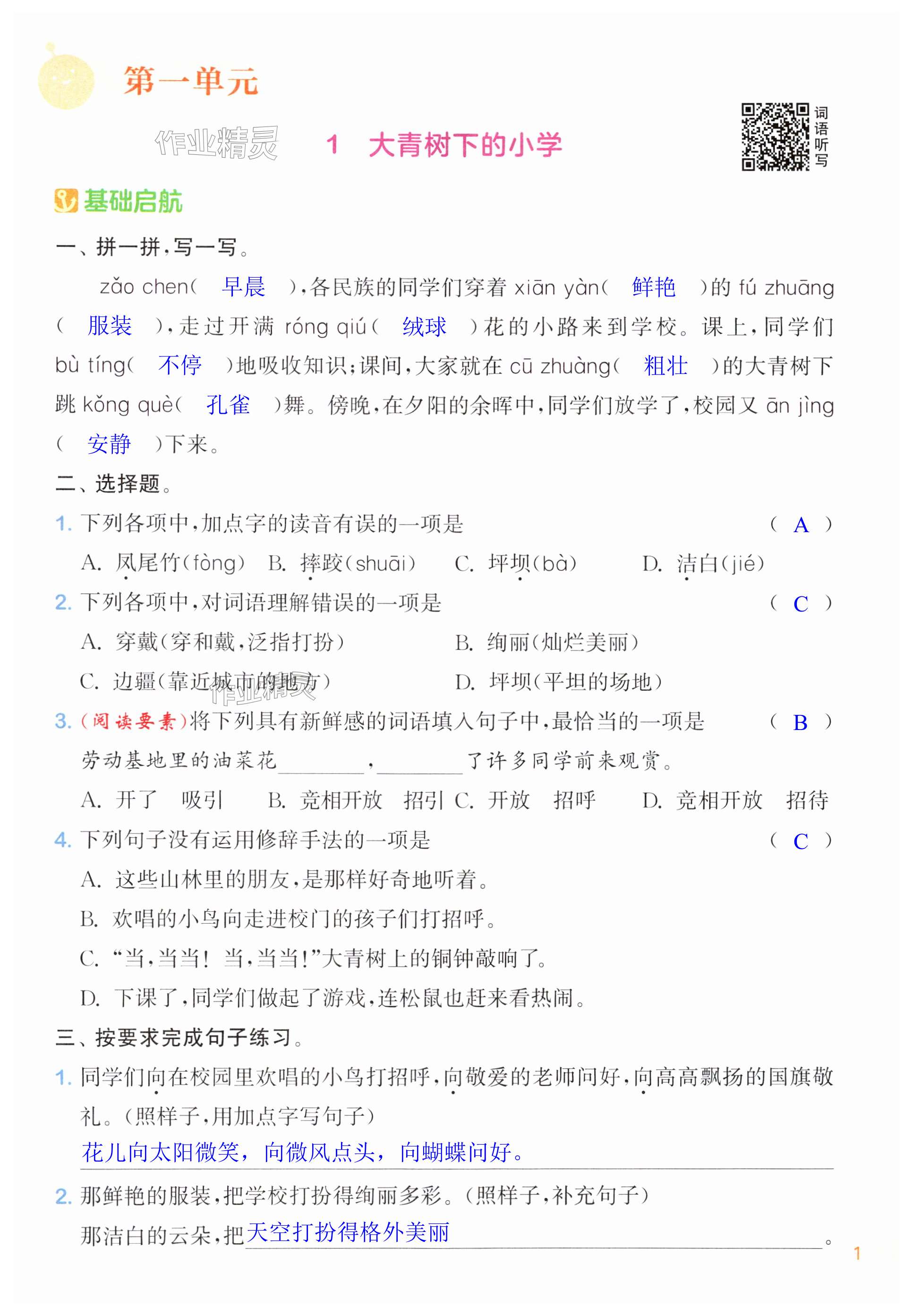 注:目前有些书本章节名称可能整理的还不是很完善,但都是按照顺序排列的,请同学们按照顺序仔细查找。练习册 2024年课时作业本闯关练三年级语文上册人教版江苏专版 答案主要是用来给同学们做完题方便对答案用的,请勿直接抄袭。
