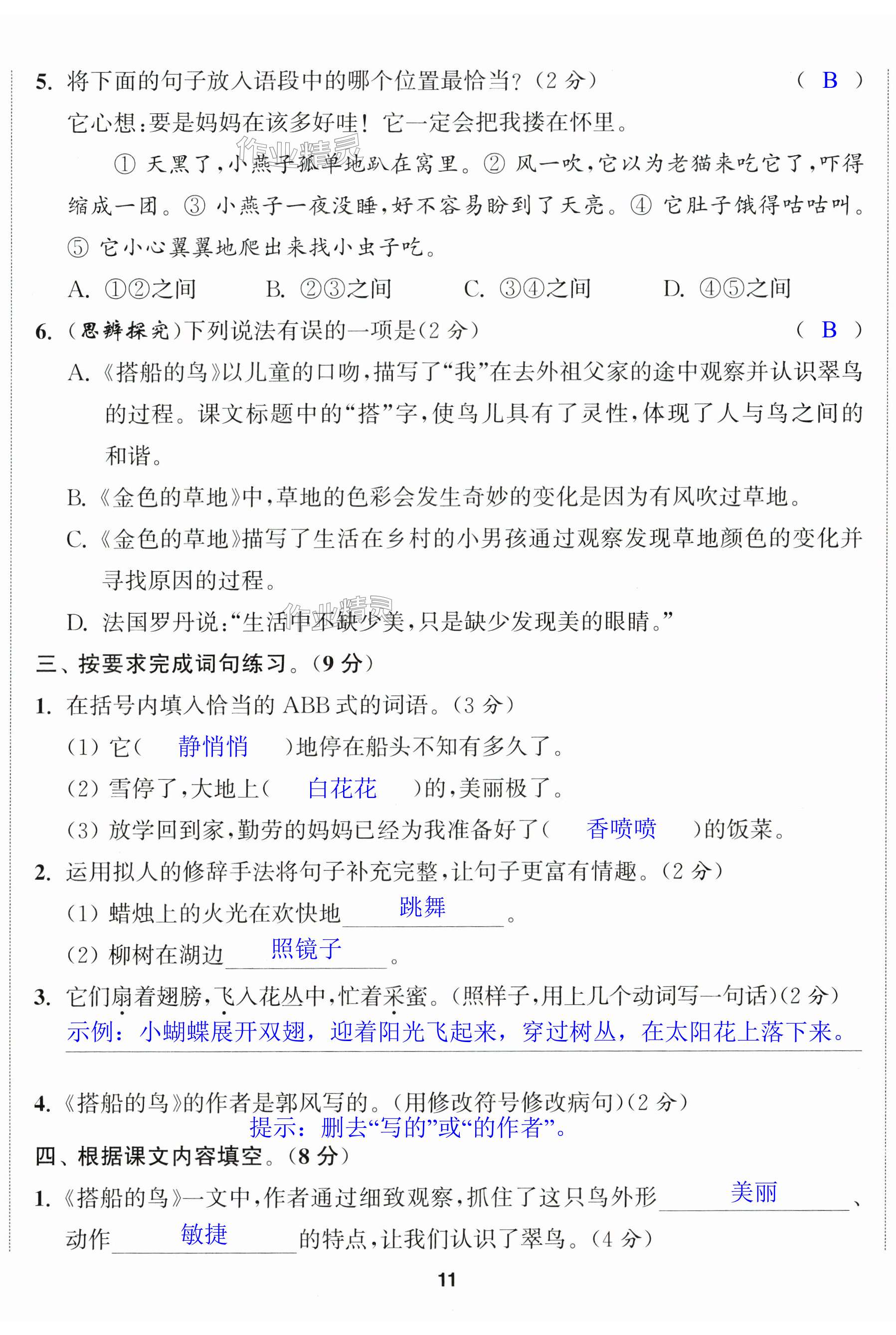 注:目前有些书本章节名称可能整理的还不是很完善,但都是按照顺序排列的,请同学们按照顺序仔细查找。练习册 2024年课时作业本闯关练三年级语文上册人教版江苏专版 答案主要是用来给同学们做完题方便对答案用的,请勿直接抄袭。