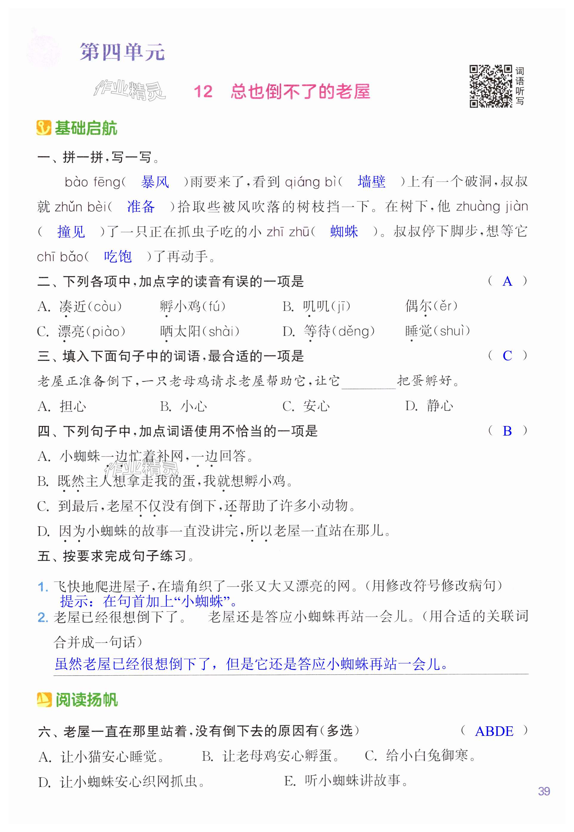 注:目前有些书本章节名称可能整理的还不是很完善,但都是按照顺序排列的,请同学们按照顺序仔细查找。练习册 2024年课时作业本闯关练三年级语文上册人教版江苏专版 答案主要是用来给同学们做完题方便对答案用的,请勿直接抄袭。