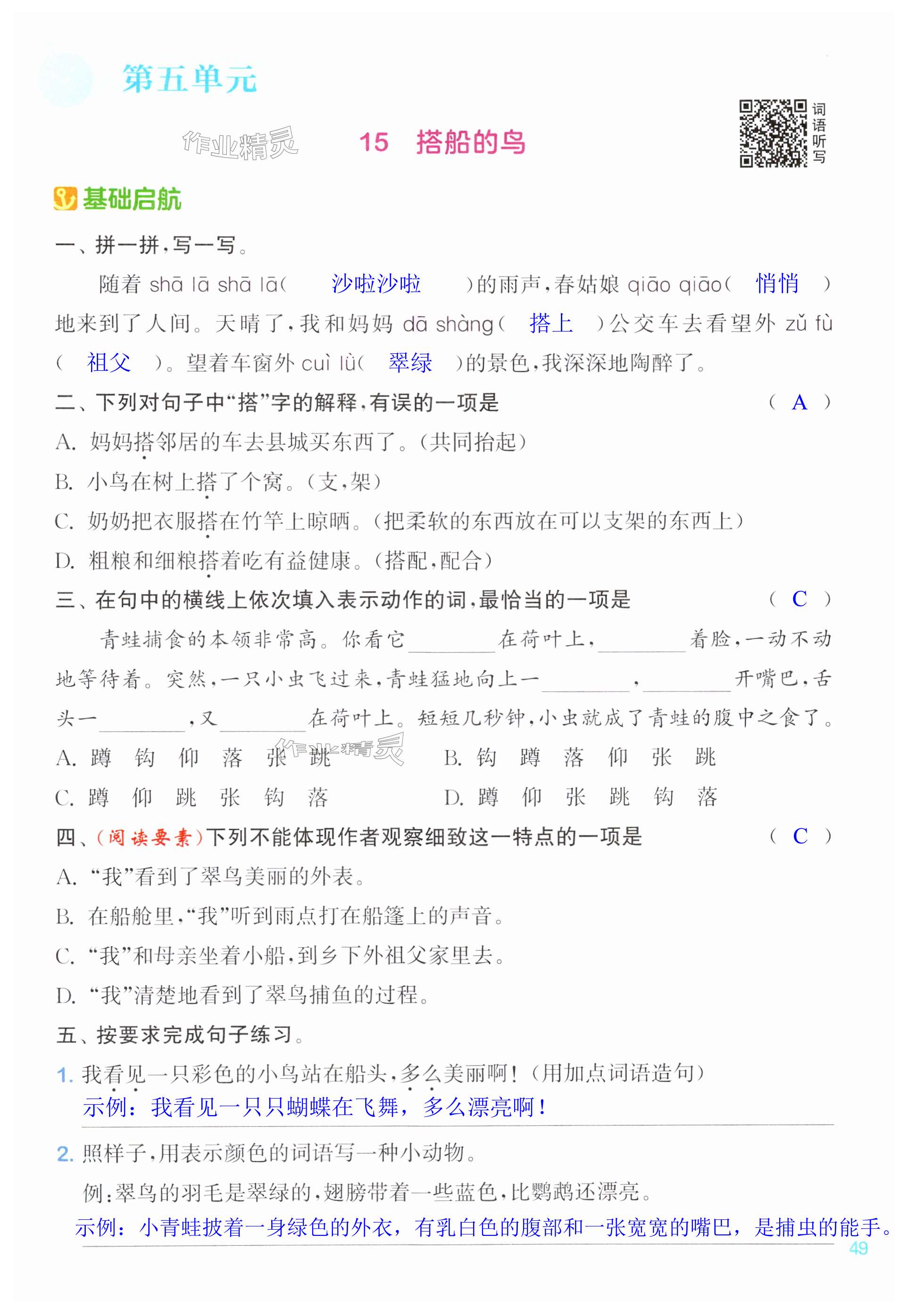 注:目前有些书本章节名称可能整理的还不是很完善,但都是按照顺序排列的,请同学们按照顺序仔细查找。练习册 2024年课时作业本闯关练三年级语文上册人教版江苏专版 答案主要是用来给同学们做完题方便对答案用的,请勿直接抄袭。