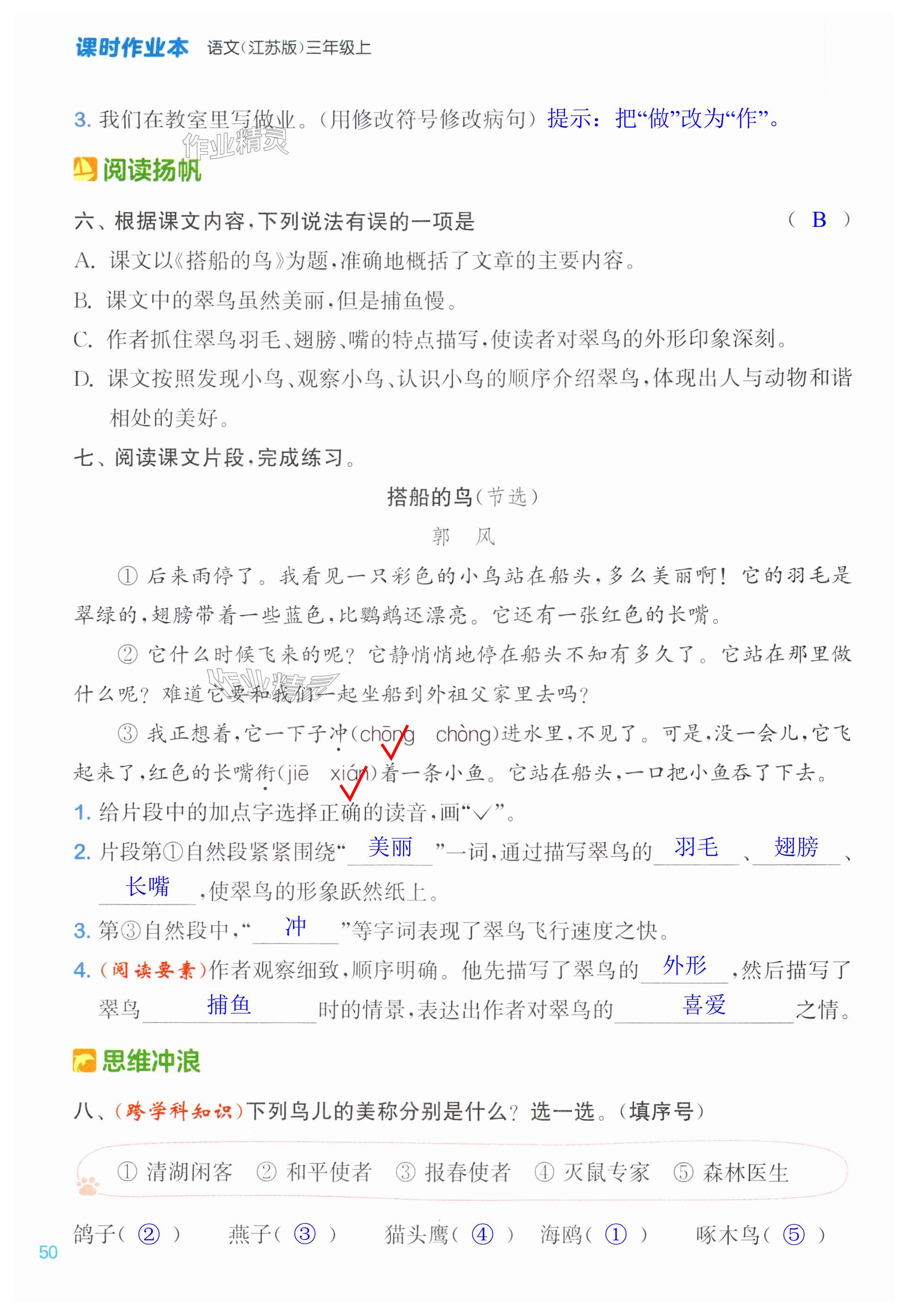 注:目前有些书本章节名称可能整理的还不是很完善,但都是按照顺序排列的,请同学们按照顺序仔细查找。练习册 2024年课时作业本闯关练三年级语文上册人教版江苏专版 答案主要是用来给同学们做完题方便对答案用的,请勿直接抄袭。