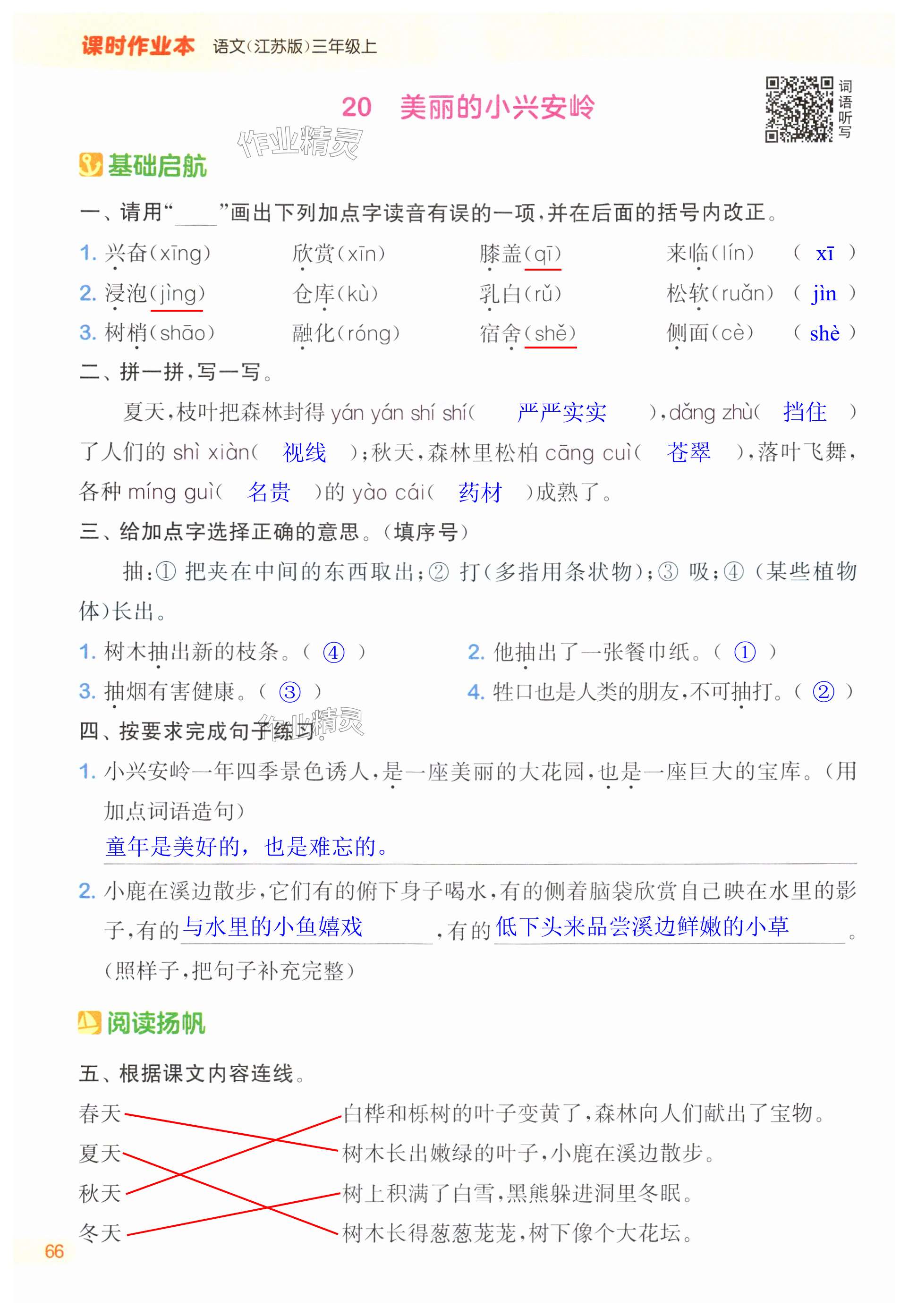 注:目前有些书本章节名称可能整理的还不是很完善,但都是按照顺序排列的,请同学们按照顺序仔细查找。练习册 2024年课时作业本闯关练三年级语文上册人教版江苏专版 答案主要是用来给同学们做完题方便对答案用的,请勿直接抄袭。
