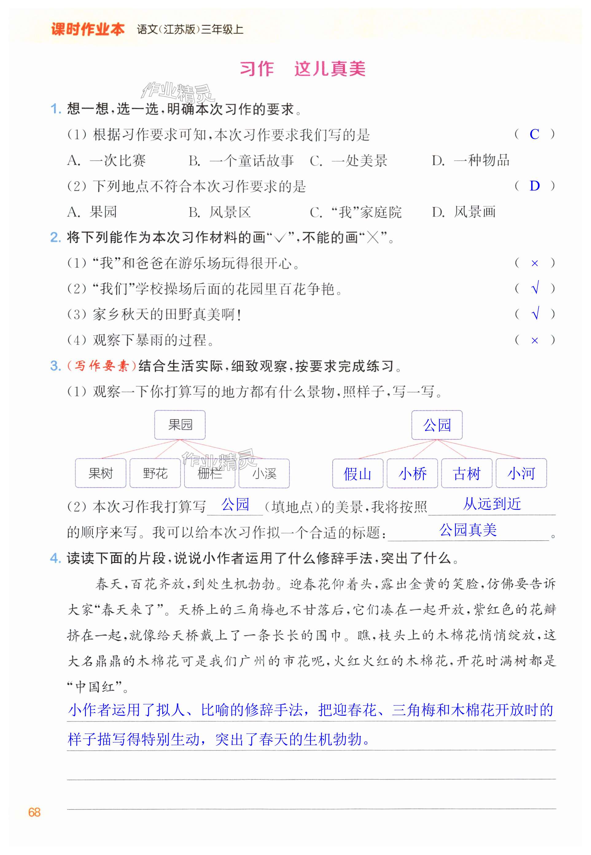 注:目前有些书本章节名称可能整理的还不是很完善,但都是按照顺序排列的,请同学们按照顺序仔细查找。练习册 2024年课时作业本闯关练三年级语文上册人教版江苏专版 答案主要是用来给同学们做完题方便对答案用的,请勿直接抄袭。