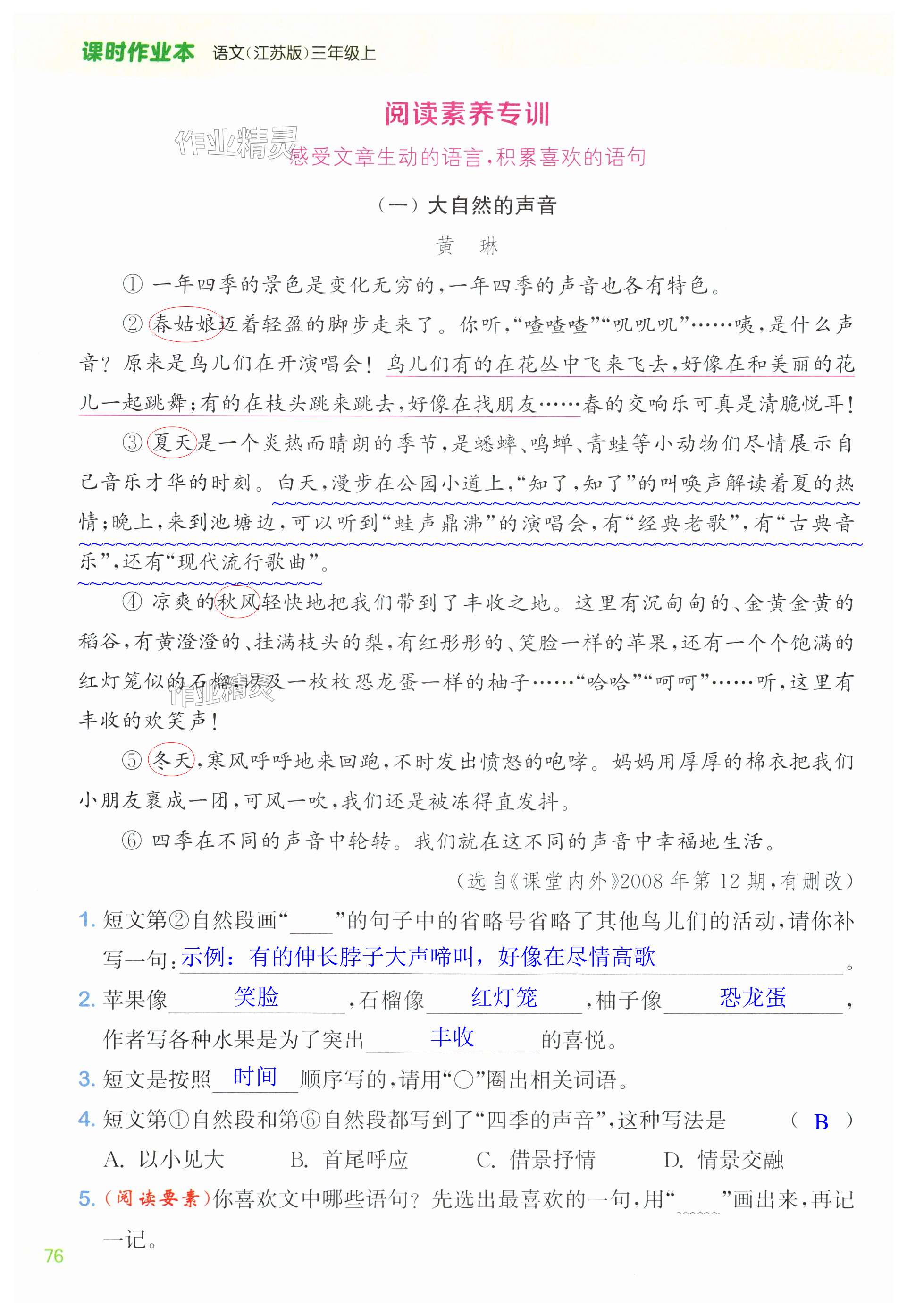 注:目前有些书本章节名称可能整理的还不是很完善,但都是按照顺序排列的,请同学们按照顺序仔细查找。练习册 2024年课时作业本闯关练三年级语文上册人教版江苏专版 答案主要是用来给同学们做完题方便对答案用的,请勿直接抄袭。