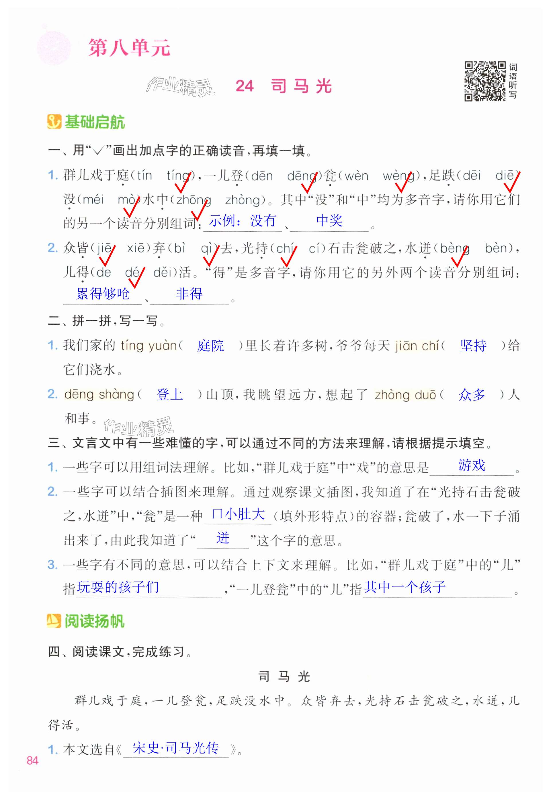 注:目前有些书本章节名称可能整理的还不是很完善,但都是按照顺序排列的,请同学们按照顺序仔细查找。练习册 2024年课时作业本闯关练三年级语文上册人教版江苏专版 答案主要是用来给同学们做完题方便对答案用的,请勿直接抄袭。