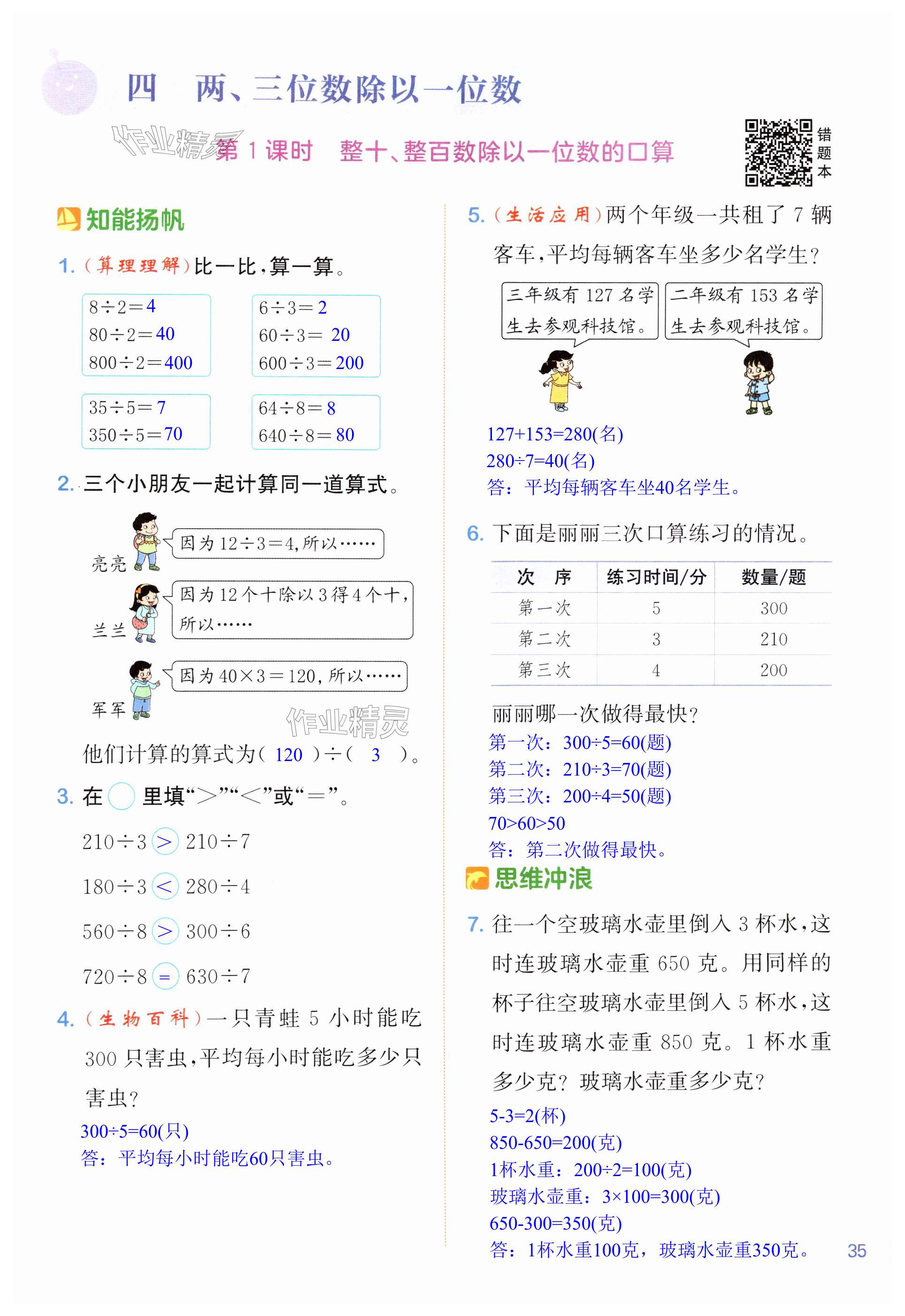 注:目前有些书本章节名称可能整理的还不是很完善,但都是按照顺序排列的,请同学们按照顺序仔细查找。练习册 2024年课时作业本闯关练三年级数学上册苏教版江苏专版 答案主要是用来给同学们做完题方便对答案用的,请勿直接抄袭。