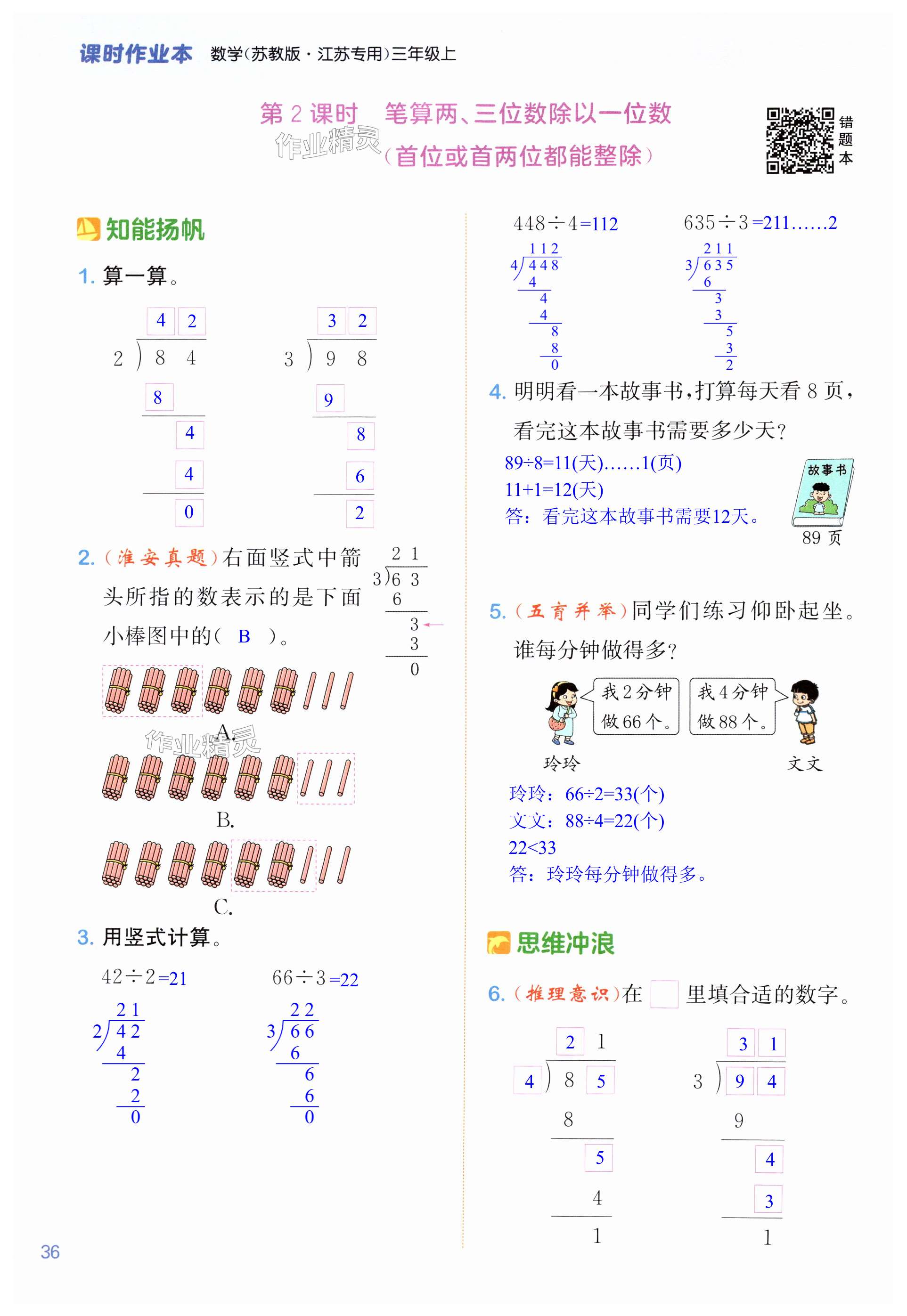 注:目前有些书本章节名称可能整理的还不是很完善,但都是按照顺序排列的,请同学们按照顺序仔细查找。练习册 2024年课时作业本闯关练三年级数学上册苏教版江苏专版 答案主要是用来给同学们做完题方便对答案用的,请勿直接抄袭。