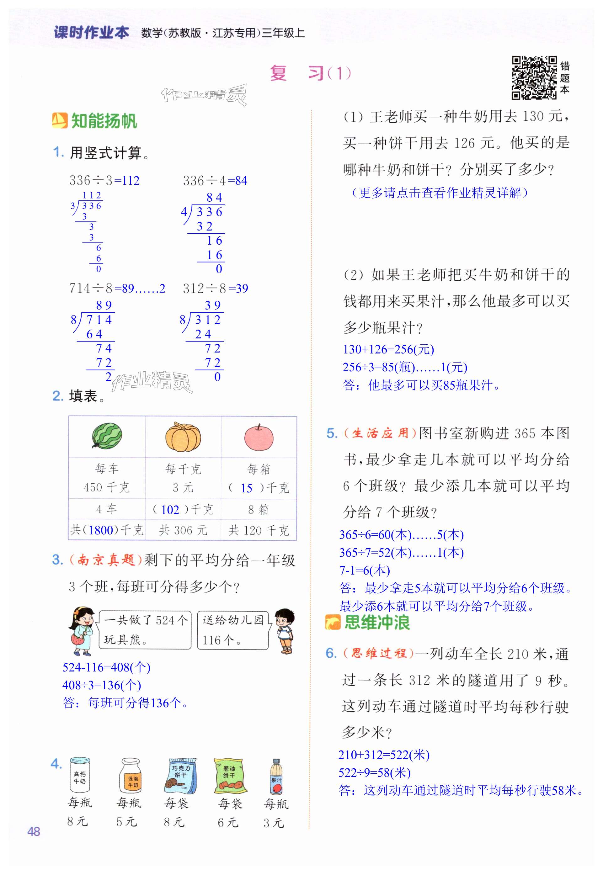 注:目前有些书本章节名称可能整理的还不是很完善,但都是按照顺序排列的,请同学们按照顺序仔细查找。练习册 2024年课时作业本闯关练三年级数学上册苏教版江苏专版 答案主要是用来给同学们做完题方便对答案用的,请勿直接抄袭。