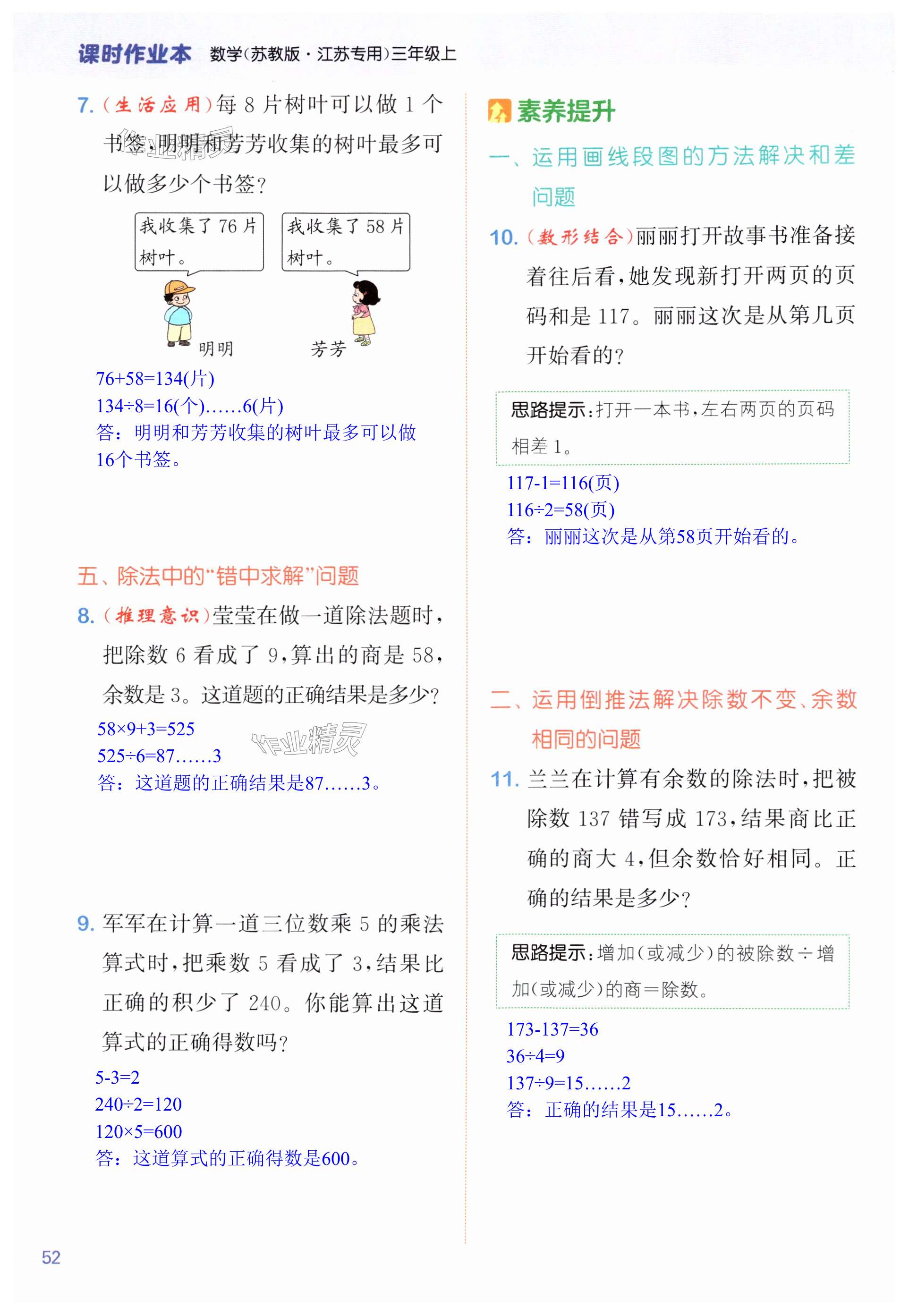 注:目前有些书本章节名称可能整理的还不是很完善,但都是按照顺序排列的,请同学们按照顺序仔细查找。练习册 2024年课时作业本闯关练三年级数学上册苏教版江苏专版 答案主要是用来给同学们做完题方便对答案用的,请勿直接抄袭。