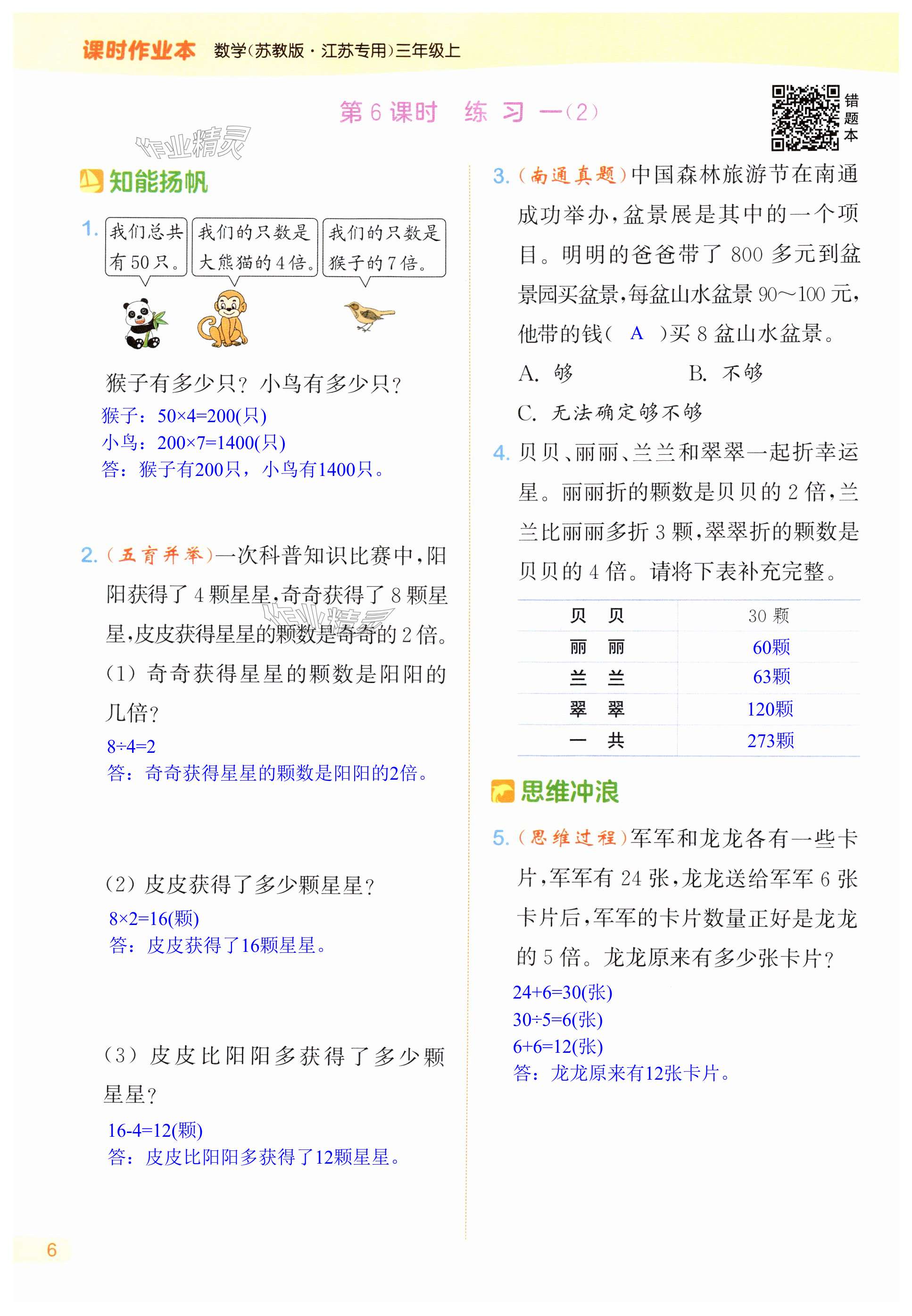 注:目前有些书本章节名称可能整理的还不是很完善,但都是按照顺序排列的,请同学们按照顺序仔细查找。练习册 2024年课时作业本闯关练三年级数学上册苏教版江苏专版 答案主要是用来给同学们做完题方便对答案用的,请勿直接抄袭。