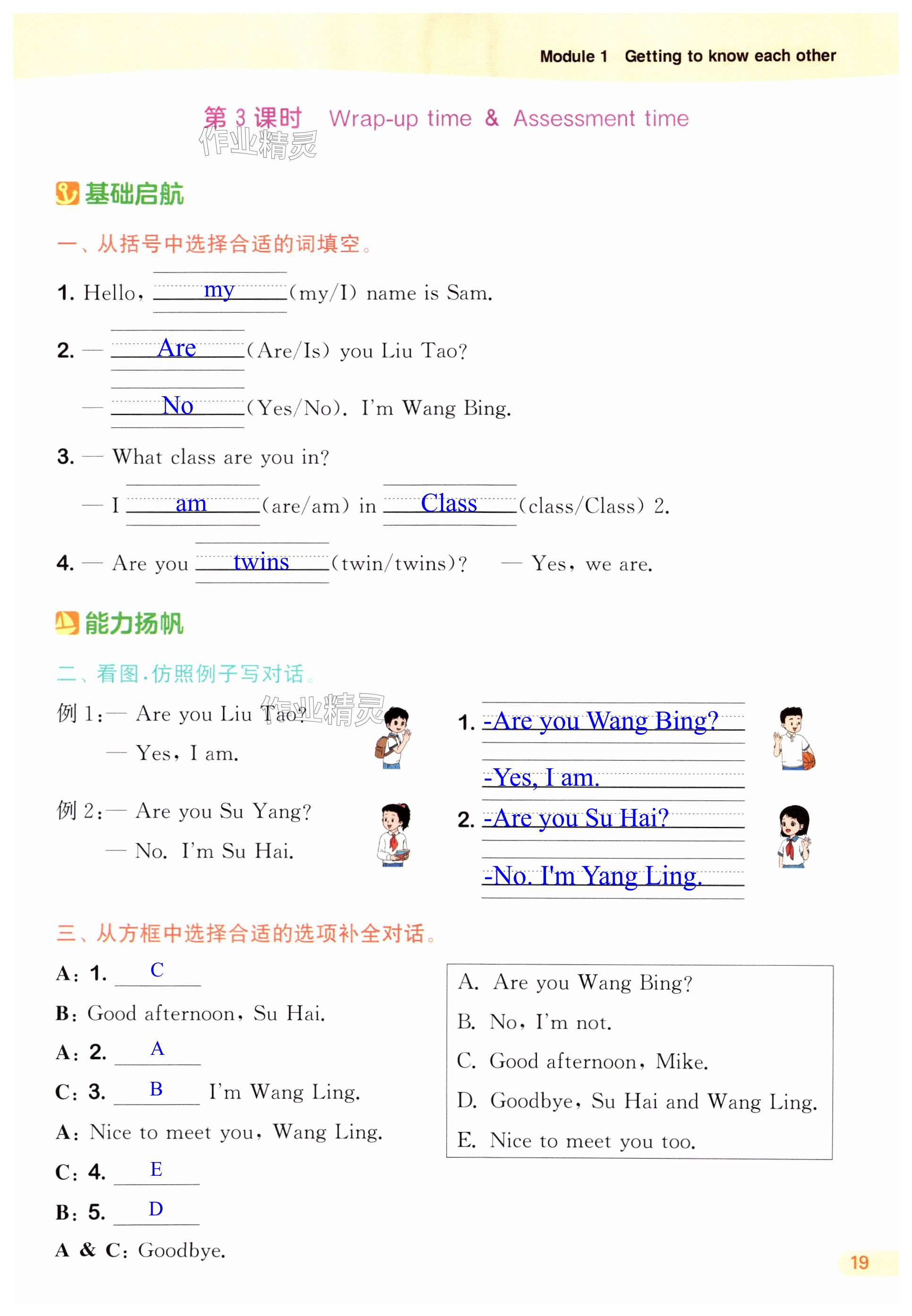 注:目前有些书本章节名称可能整理的还不是很完善,但都是按照顺序排列的,请同学们按照顺序仔细查找。练习册 2024年课时作业本闯关练三年级英语上册译林版 答案主要是用来给同学们做完题方便对答案用的,请勿直接抄袭。