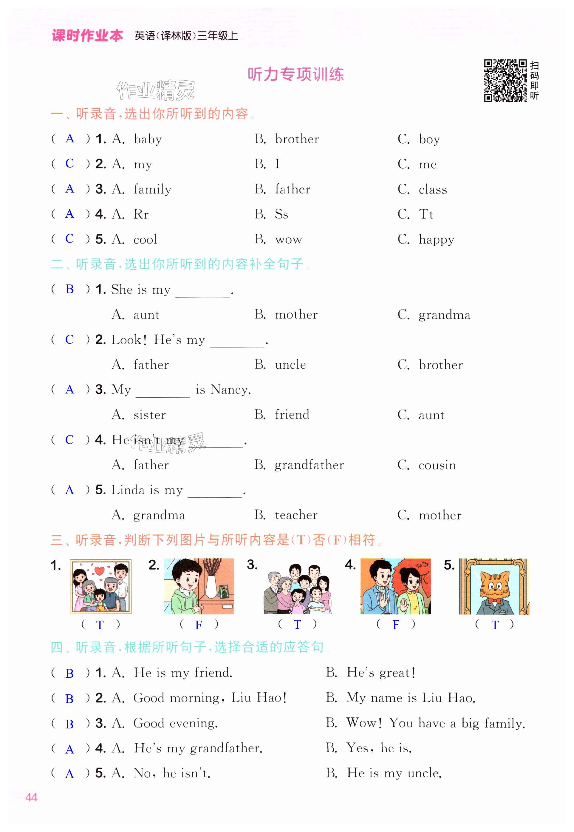 注:目前有些书本章节名称可能整理的还不是很完善,但都是按照顺序排列的,请同学们按照顺序仔细查找。练习册 2024年课时作业本闯关练三年级英语上册译林版 答案主要是用来给同学们做完题方便对答案用的,请勿直接抄袭。