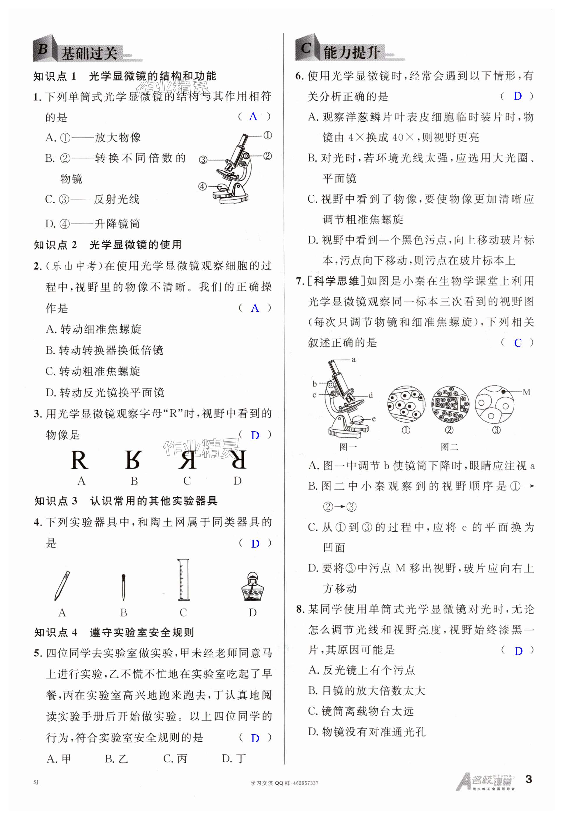 注:目前有些书本章节名称可能整理的还不是很完善,但都是按照顺序排列的,请同学们按照顺序仔细查找。练习册 2024年名校课堂七年级生物上册苏教版 答案主要是用来给同学们做完题方便对答案用的,请勿直接抄袭。