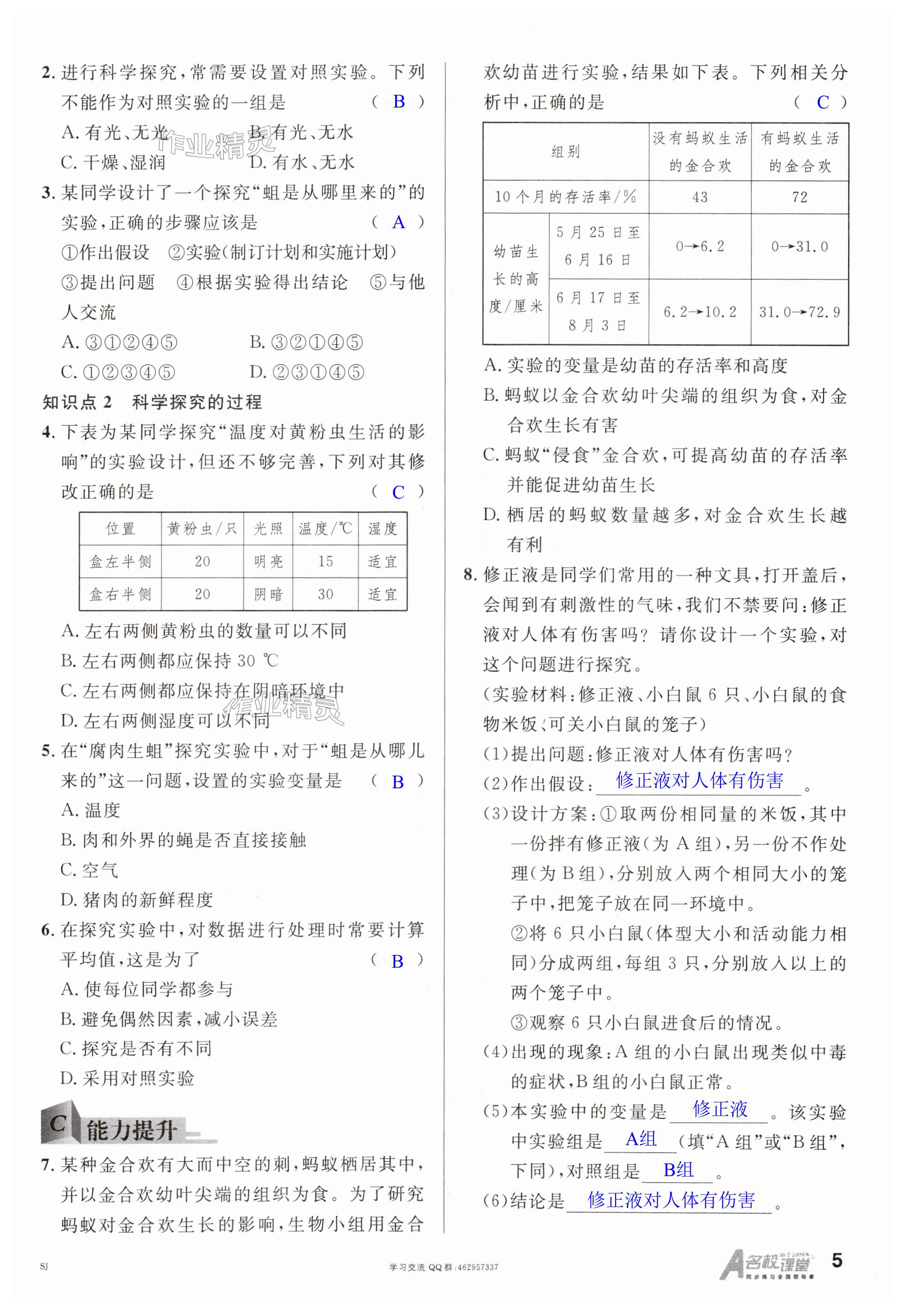 注:目前有些书本章节名称可能整理的还不是很完善,但都是按照顺序排列的,请同学们按照顺序仔细查找。练习册 2024年名校课堂七年级生物上册苏教版 答案主要是用来给同学们做完题方便对答案用的,请勿直接抄袭。