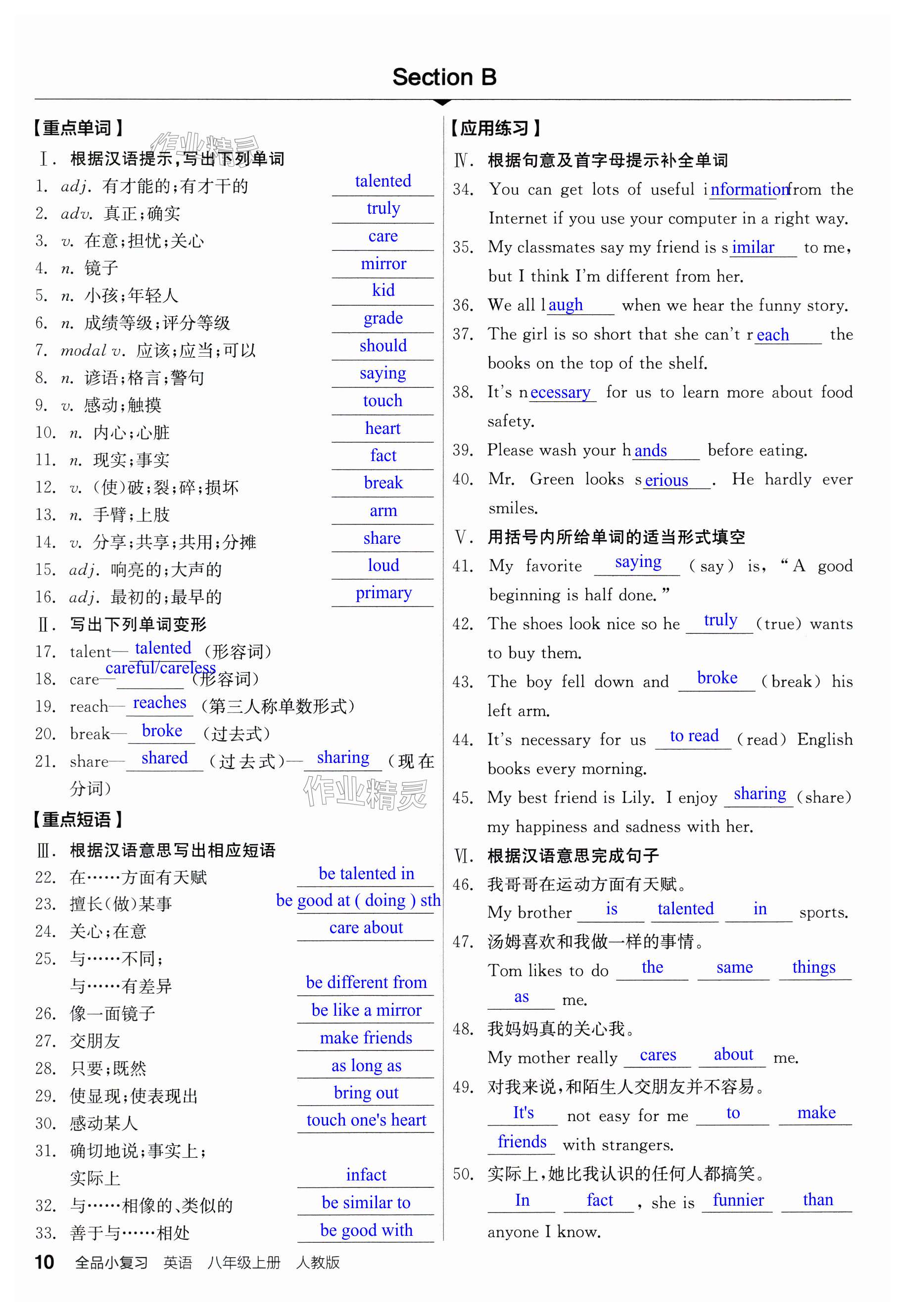 注:目前有些书本章节名称可能整理的还不是很完善,但都是按照顺序排列的,请同学们按照顺序仔细查找。练习册 2024年全品小复习八年级英语上册人教版宁夏专版 答案主要是用来给同学们做完题方便对答案用的,请勿直接抄袭。
